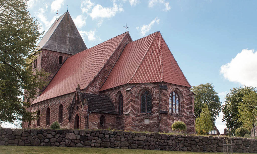 Der für die Region typische Backsteinbau auf einem Feldsteinsockel geht in seinen Ursprüngen auf das 12. Jahrhundert zurück und wurde seit dem 13. Jahrhundert vielfach verändert. Im Westen überragt seit der Mitte des 16. Jahrhunderts ein massiger Turm das Kirchenschiff.
