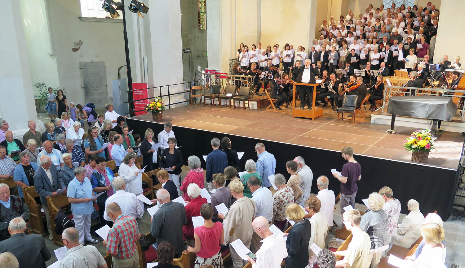 Sehr erfreulich zeigten sich die Veranstalter auch wieder mit den Besucherzahlen der täglichen "Geistlichen Morgenmusiken" (durchschnittlich 450 Gäste) und des Festgottesdienstes im Dom St. Nikolai (ca. 700 Gäste). Schon der Auftakt war begeisternd: Rund 500 Menschen feierten am Montag (4. Juni) den Open-Air-Bläsergottesdienst zur Eröffnung der Bachwoche auf dem Greifswalder Marktplatz, darunter ein imposanter Chor von knapp 60 Blechbläsern.