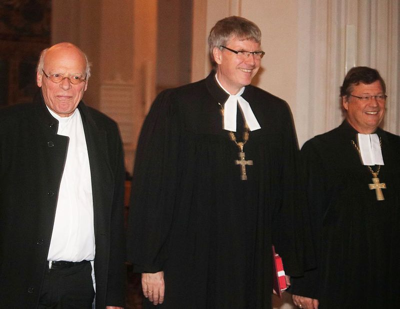 Landesbischof Gerhard Ulrich hielt den Festvortrag, seine Kollegen im Sprengel Mecklenburg und Pommern, Bischof Dr. Hans-Jürgen Abromeit und Bischof Dr. Andreas v. Maltzahn, feierten eine Andacht im Dom. Bischof Abromeit predigte zu einem Vers aus dem Galaterbrief des Paulus: „Zur Freiheit hat uns Christus befreit“. Dabei beschrieb er, wie eine erstrebte unbegrenzte individuelle Freiheit tatsächlich zu Angst und Unfreiheit führe. Dagegen habe Martin Luther vor 500 Jahren in den Schriften des Paulus eine ganz andere Art von Freiheit wiederentdeckt, nämlich die ‚Freiheit eines Christenmenschen‘: „Die Freiheit, zu der ich durch Jesus Christus befreit werde, bedeutet nicht, dass ich machen kann, was ich will. Vielmehr ist derjenige, der immer nur das tut, was er will, zutiefst versklavt durch sein eigenes Ich. Er droht, der Wolf des Menschen zu werden. Frei bin ich nicht nur für mich, sondern gerade dann, wenn ich auch für andere frei bin. Darum gehören die herrschaftliche Freiheit und der Dienst für den Nächsten zusammen.“ Die Andacht begleitete Landeskirchenmusikdirektor Frank Dittmer an der Orgel und das FrauenChorEnsemble St. Nikolai aus der Universitäts- und Hansestadt.