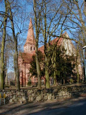 Der Backsteinbau wurde in der ersten Hälfte des 14. Jahrhunderts errichtet und bis auf den Chorraum im Jahr 1889 zu einer dreischiffigen Hallenkirche mit Westturm umgebaut. Besonders bedeutsam sind die Wand- und Gewölbemalereien im Chor, die aus der Erbauungszeit stammen und 1889 überarbeitet wurden. In zwei übereinanderliegenden, umlaufenden Friesen werden Szenen aus dem biblischen Alten Testament solchen des Neuen Testamentes gegenübergestellt.