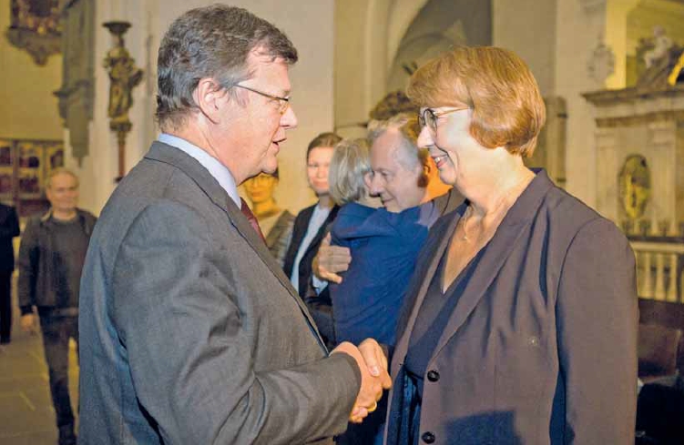 Um 20.40 Uhr ist es so weit, das Glöckchen klingelt, die Synodalen werden gebeten, wieder Platz zu nehmen. Die Stimmen sind ausgezählt. Synodenpräses Tietze verkündet das Ergebnis: „Auf Kristina Kühnbaum-Schmidt entfallen 90 Stimmen...“, Tietze hat seinen Satz noch nicht zu Ende gebracht, da bricht im Lübecker Dom schon Jubel aus. Allen Anwesenden ist klar, damit ist die Thüringer Regionalbischöfin gewählt.