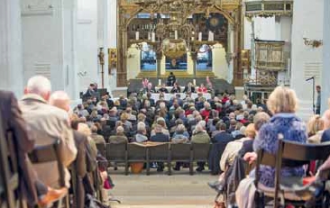 Es ist zugig im Lübecker Dom. Viele der Besucher lassen ihre Mäntel und Jacken an, als sie auf den Stühlen in der Kirche Platz nehmen. Es ist wuselig, überall wird geredet, Menschen laufen hin und her, begrüßen einander. Gegenüber des Eingangs ist eine lange Tischreihe aufgebaut, Presse-Schilder stehen auf den Tischen. Das Interesse an der Wahl des neuen Landesbischofs der Nordkirche ist groß. Doch bevor es an die Wahl geht, müssen sich die Besucher in der Kirche gedulden. Zunächst wird Gottesdienst gefeiert.