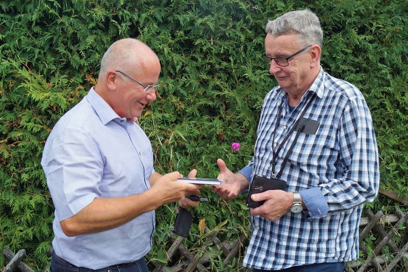 Propst Gerd Panknin traf sich in Hanshagen auch mit dem Bürgermeister, Dr. Michael Harcks, zu einem ausführlichen Gespräch. Dabei zeigte sich, wie eng und förderlich sich die Kooperation der Ortsgemeinde und der Kirchengemeinde gestaltet. „Die Zusammenarbeit ist ausgesprochen gut“, meinte Matthias Ballke, der an dem Treffen teilnahm. Seit der ersten gemeinsamen Fahrt zur holsteinischen Partnergemeinde Borsfleth, deren Zustandekommen seitens der Kirchengemeinde initiiert wurde, verstünden sich Pastor und Bürgermeister tadellos. Das bestätigte Michael Harcks: „Wir arbeiten seit vielen Jahren gut zusammen. Die Kirchengemeinde ist immer interessiert, an der Dorfentwicklung mitzuwirken.“ Und Matthias Ballke fügte hinzu: „Wir beide arbeiten für alle Menschen hier.“ Das sei die gemeinsame Grundlage der Kooperation. „Gegenseitige Hilfe ist in Hanshagen selbstverständlich“, ist Michael Harcks überzeugt. Vom Propst auf die Einwohnerstruktur angesprochen, sagte der Bürgermeister, dass es zwar insgesamt weniger Einwohner werden, der Anteil der Jüngeren jedoch steige. Das sei nicht zuletzt auch den Angeboten der Kirche zu verdanken, so die Einschätzung des Bürgermeisters.