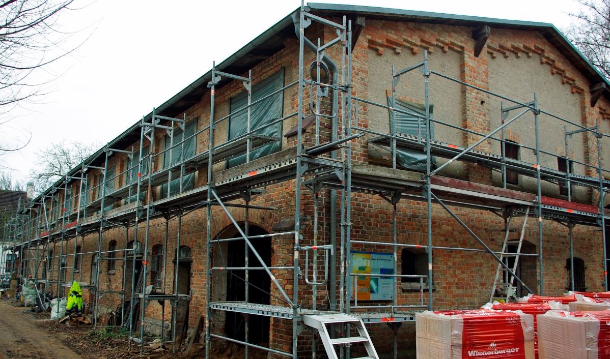 Die Gesamtkosten der Scheunenrekonstruktion belaufen sich auf 2,2 Millionen Euro. Die Bauarbeiten begannen im Juli 2018, die Fertigstellung ist zum Jahresende 2019 geplant. Die Scheune von 1895 ist eingebettet in ein denkmalgeschütztes Ensemble des ehemaligen Pfarrhofes mit Pfarrhaus von 1860 und der Kirche aus dem 14. Jahrhundert.