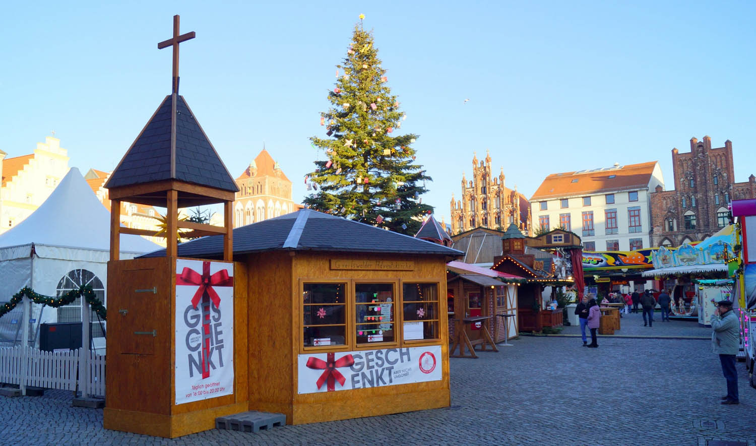 Adventskirche auf dem Greifswalder Weihnachtsmarkt Ruhepunkt im bunten Trubel