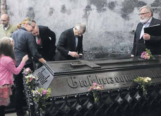 Aus dem Erlös wurde dann auch ein Spendentopf eingerichtet, dessen Inhalt im Sinn der Großfürstin Maria Pawlowna verwendet wird. So sei daraus ein Buch über sie finanziert worden, dass der Schweriner Schlossverein unter Leitung von Mathias Schott herausgegeben hat, ebenso die Restaurierung eines Bereichs des Sternenhimmels in der Schweriner Schlosskirche – und nun die des Sarkophags der Auguste. Noch warten etliche der großherzoglichen Prunksarge auf ihre Restaurierung. Doch Graf Toerring hatte zum Schluss noch eine gute Nachricht: „Nach einer genauen Untersuchung des Spendentopfes sehe ich hier noch Möglichkeiten.“