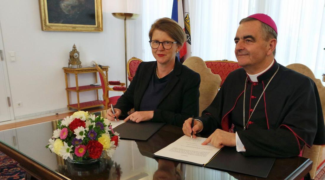 Die Professur sei ein ausdrücklicher Wunsch der katholischen Kirche gewesen, dem das Land gern nachkomme, sagte Hoffmeister, die zuständig ist für Kirchenangelegenheiten. "Die Lehre und Forschung auf dem Gebiet der Theologie gehören zum breiten Spektrum des Erkenntnisgewinns dazu." Der neue Lehrstuhl solle sich in aktuelle gesellschaftliche Diskussionen einbringen und Lebensorientierung vermitteln, ergänzte der Nuntius Eterovic.