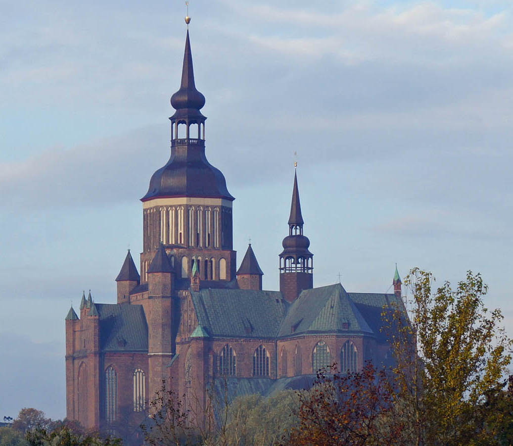 Die Marienkirche am Neuen Markt wurde erstmalig 1298 erwähnt. In ihrer heutigen Form entstand sie zwischen 1384 und 1478 als dreischiffige eingewölbte Basilika mit Chorumgang und Kapellenkranz. Das Hauptschiff ist 99 Meter lang und 32,5 Meter hoch und gehört damit zu den größten norddeutschen Backsteingotik-Kirchen.