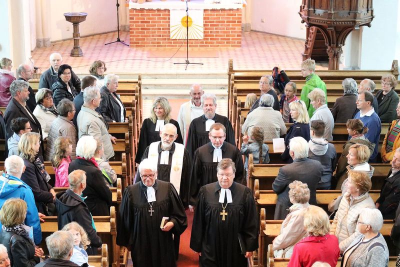 Den Festgottesdienst begleitete musikalisch eine Posaunenchor der Region und der Torgelower Kirchenchor unter der Leitung von Jasmin Domschula gemeinsam mit dem Kirchenchor Ueckermünde-Liepgarten mit Chorleiterin Anke Schulz. Der Pasewalker Propst Andreas Haerter, Pastorin Kussat-Becker (Ahlbeck-Eggesin), Pastor Stephan Leder (Ueckermünde), Pastor Frank Sattler (Torgelow), Pastor Rainer Schild (Leopoldshagen) und Pastor Udo Wollenberg (Ferdinandshof) wirkten im Gottesdienst mit.