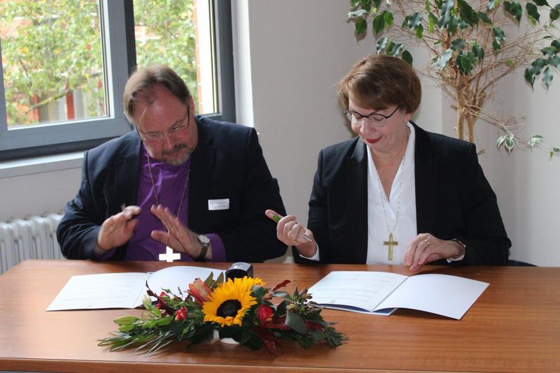 Nordkirchen-Landesbischöfin Kristina Kühnbaum-Schmidt und Dezsö Zoltán Adorjáni, Bischof der Evangelisch-Lutherischen Kirche in Rumänien, haben am Freitag in Greifswald einen Partnerschaftsvertrag unterzeichnet. Darin bekräftigen beide Kirchen, sich im Gebet und durch Begegnungen gegenseitig zu unterstützen. Die Partnerkirche lebt in einer "doppelten Minderheit", weil die Mitglieder meist ungarisch sprechen und knapp 90 Prozent der Rumänen Mitglied der rumänisch-orthodoxen Kirche sind. Seit den 1990er-Jahren war die Evangelisch-Lutherische Kirche in Rumänien Partnerkirche der damaligen Landeskirche Mecklenburg.