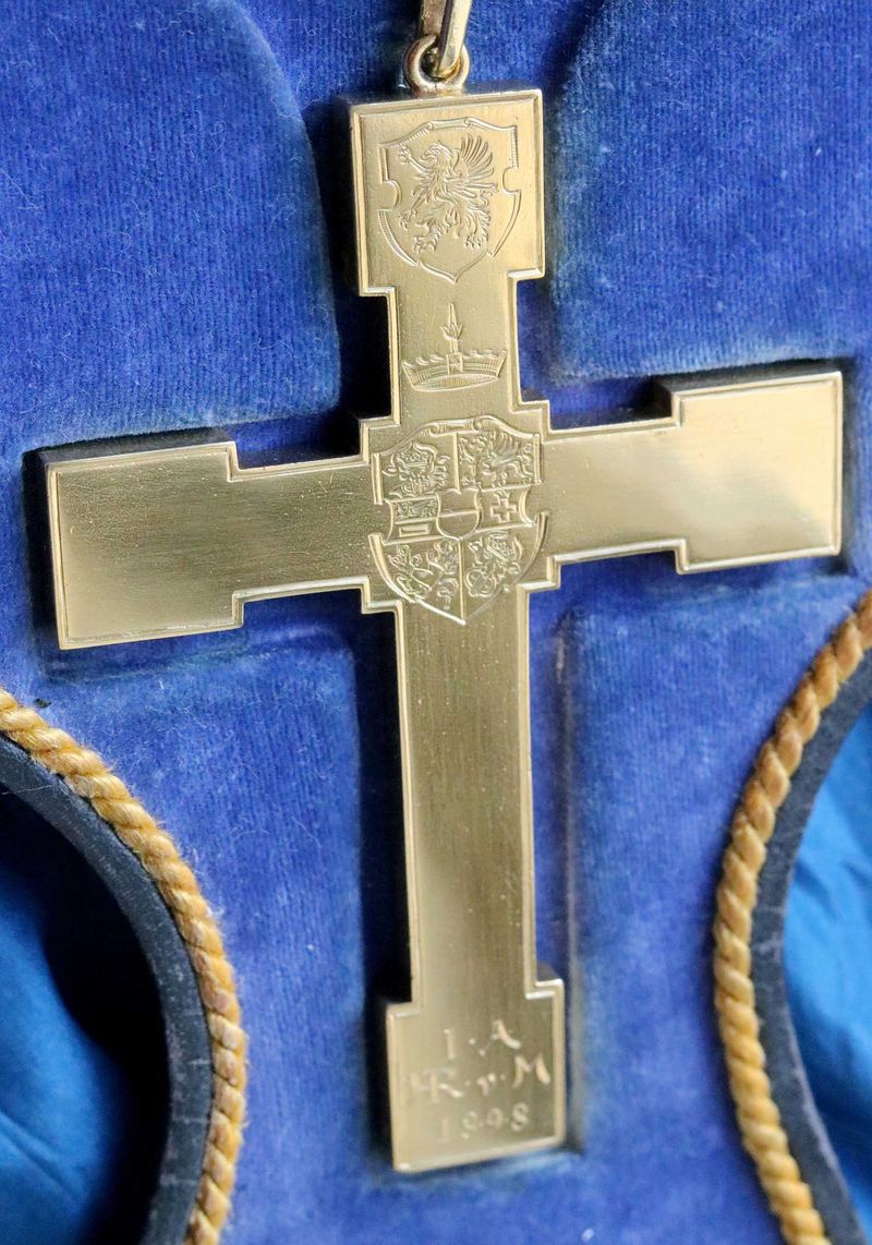 Das Kreuz, das nunmehr in neuem Glanz erstrahlt, ist eher schlicht: 1898 aus Silber gefertigt und anschließend vergoldet hat es als einzigen Schmuck geometrische Ornamente aufgraviert: Die vier Evangelisten kreisförmig um das Lamm Gottes angeordnet schmücken die Vorderseite. Der 54-Jährige erzählt: „Die gesamte Oberfläche des Kreuzes war regelrecht zerhackt und hatte allen Glanz verloren“. Seine Vermutung: „Die Kette, die erst 25 Jahre später hergestellt wurde, hat auch diese zahlreichen Einschnitte in der Oberfläche und ist dadurch mattiert. Offensichtlich hat man also in den 1920er-Jahren diese als Gestaltungselement hinzugefügt. Wahrscheinlich um den Verdacht des Prunks etwas abzumildern.“ Ein Gedanke, dem der Schmiedemeister nicht viel abgewinnen kann: „Die kirchlichen Gegenstände wurden ja über Jahrhunderte mit den besten Materialien von den besten Handwerkern angefertigt.“