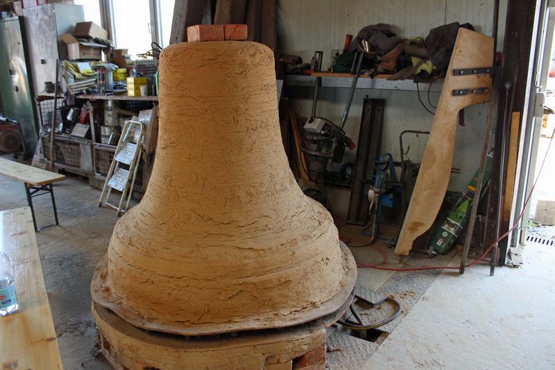 Rückblende: Bereits morgens in aller Frühe des 23. August war der Schmelzofen angefeuert worden, damit die Glockenspeise schmilzt, die aus 78 Prozent Kupfer und 22 Prozent Zinn besteht. Sobald die Bronze eine Temperatur von zirka 1100 Grad Celsius erreicht hatte, konnte mit dem Guss begonnen werden. Vertreter der Kirchengemeinde waren bei diesem kunstvollen Handwerk dabei. Weltweit werden Glocken schon seit zirka 5000 Jahren gegossen. Das heute noch gebräuchliche Verfahren geht auf das 16. Jahrhundert zurück. Nach dem Guss kühlten die gegossenen Glocken in der ausgehobenen Glockengrube zunächst noch einige Tage aus, bis sie aus ihrem Mantel befreit wurden. Dann wurde mit der Stimmgabel geprüft, ob der Guss gelungen ist und die Glocke wie gewünscht erklingt.