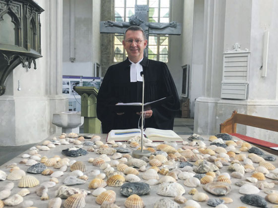 Der Mittelaltar im Greifswalder Dom ähnelt am Montagmorgen einem Gabentisch. Jede Menge Muscheln liegen auf dem Marmor. „Das passt doch super zur Nordkirche“, sagt Pastor Martin Wilhelm fröhlich, der hier gleich einen besonderen Gottesdienst eröffnet. „Das sind alles Muscheln aus dem Urlaub“, erläutert Benjamin Skladny, Schulleiter des Evangelischen Schulzentrums Martinschule der Hansestadt. „Jeder unserer Mitarbeiter bekommt davon eine als Mitbringsel und Jahresbegleiter.“