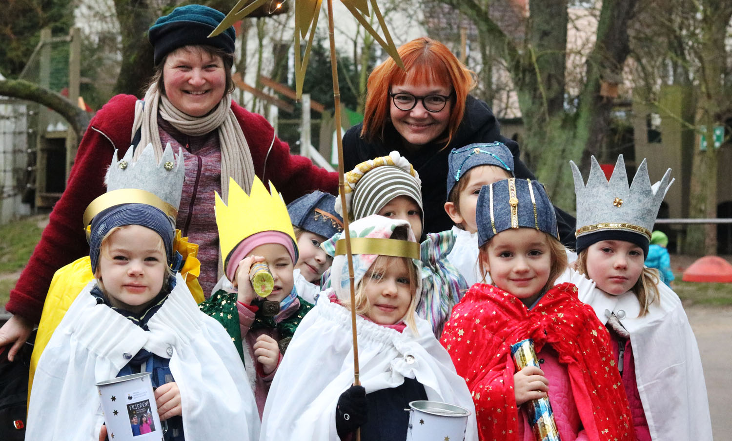 Beate Kempf-Beyrich, Pastorin der Domgemeinde, hat den Brauch der Sternsinger, die den Segen für das neue Jahr in die Häuser bringen und dabei für ein Hilfswerk sammeln, in ihrer vorherigen Kirchengemeinde Heringsdorf über viele Jahre gepflegt. Nun hat sie erstmals auch im Greifswalder Dom Sternsinger eingeführt: Am Vormittag des Dreikönigstages besuchten die Kindergartenkinder Gemeindeglieder, aber auch das Institut für Kirchenmusik und eine Kinderarztpraxis. „Unseren Kindergartenkinder hat es sehr viel Spaß gemacht“, erzählt Steffi Fenske. „Besonders stolz waren sie, dass sie etwas Gutes tun konnten, indem sie für Kinder in Flüchtlingslagern im Libanon gesammelt haben.“ 225 Euro haben die Kleinsten so in ihre Sammelbüchsen bekommen.