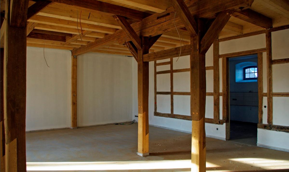 Die Scheune bietet auf zwei Ebenen insgesamt knapp 800 Quadratmeter Fläche. Im Erdgeschoss gibt es neben einem großen Saal, einem großen Foyer, Sanitäranlagen und Küche auch eine Werkstatt für den Friedhofsmitarbeiter sowie einen Lagerraum. Im Obergeschoss befinden sich zwei rollstuhlgerechte Wohnungen, die ab Mai bezogen werden sollen. Zudem gibt es im Obergeschoss drei Gruppenräume.