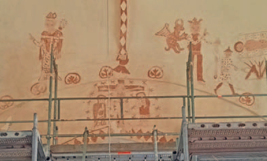 Aber der Dankgottesdienst anlässlich der Freilegung der mittelalterlichen Wandmalereien mit anschließendem Festkonzert soll dann am Sonnabend, 21. August, um 15 Uhr ganz bestimmt in Ruchow gefeiert werden. Dann wird Restaurator Matthias Zahn auch einen Vortrag zu den mittelalterlichen Malereien halten. Was aber die zum Teil sehr filigranen Schriftbänder heißen, die vor fast 20 Jahren und auch jetzt von Josef Heber und seiner Kollegin Ulrike Triebel gefunden worden sind – das wird vielleicht bis dahin noch nicht klar sein. Sie sind aus der Entstehungszeit der Kirche, denn sie sind nicht nur aufgemalt, sondern vorgeritzt, erst dann kamen die Kalkanstriche an die Wände, erklärt Josef Heber. Daher müssen sie also aus der Bauzeit stammen. Ein Balken ist von 1267, hat ein Dendrologe festgestellt. Ob es vielleicht Informationen sind, die die Handwerker aufgeschrieben haben, fragt sich Stefanie v. Laer. Irgendwann wird es jemand entschlüsseln.