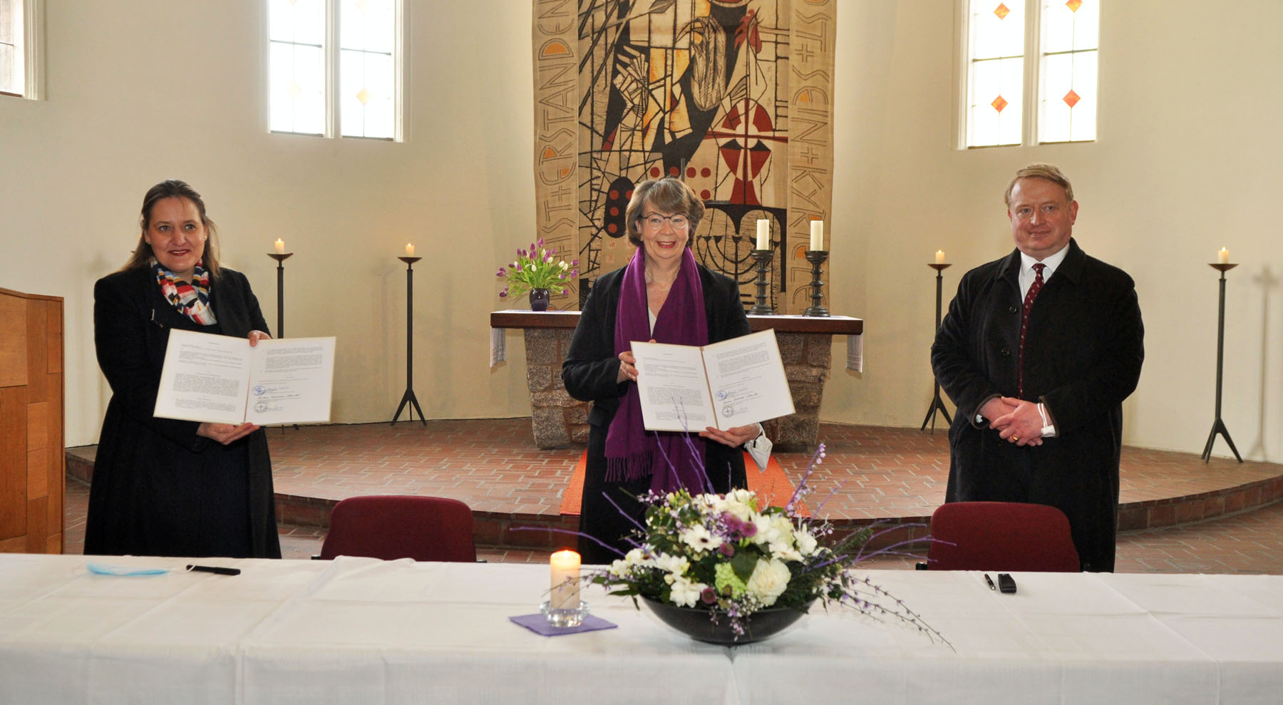 Landesbischöfin Kühnbaum-Schmidt verband die Unterzeichnung mit einem Besuch der Kirchengemeinde: „Ich freue ich mich, aus diesem Anlass heute auch einen Besuch in der evangelischen Kirchengemeinde Fürstenberg/Havel machen zu können und etwas von der engagierten Gemeindearbeit hier zu erfahren.“