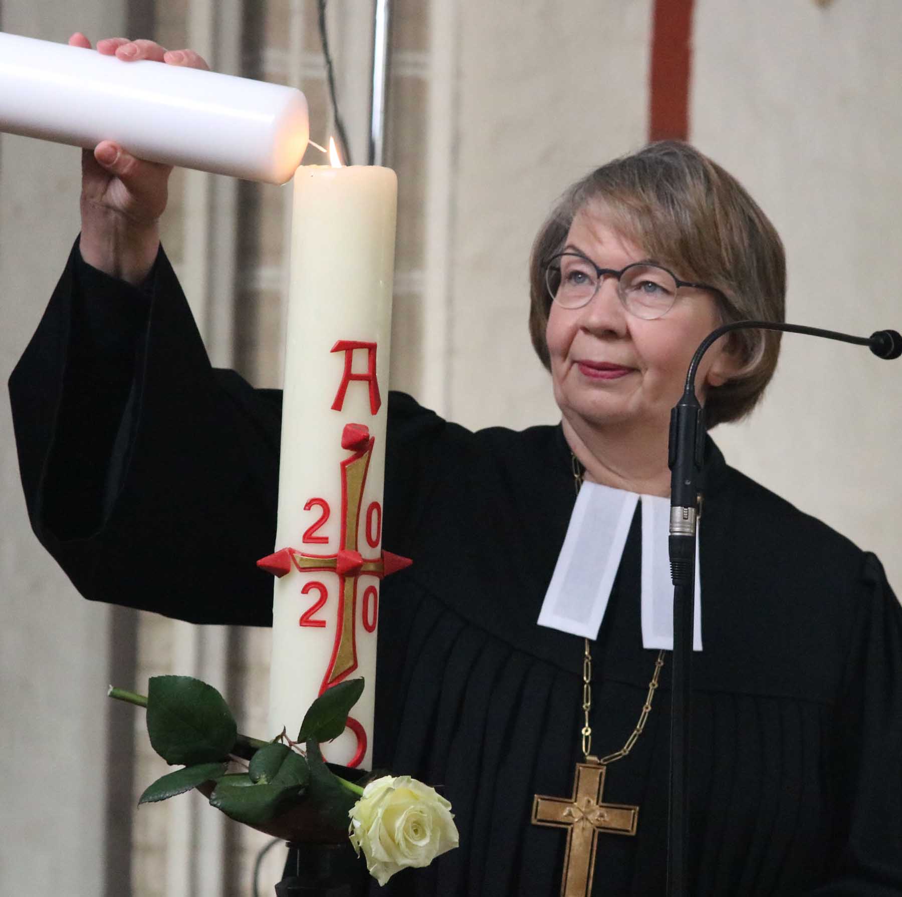 Am Ende des Gottesdienstes beteten die Beteiligten auch für die Menschen, die an und mit COVID-19 verstorben sind, und deren Angehörige. Henrike Regenstein sagte: „Wir beten für alle, die einen geliebten Menschen verloren haben. Heile ihren Schmerz. Schenk ihnen Wärme und Licht, Hoffnung und Kraft. Hilf ihnen, am Sinn ihres Lebens festzuhalten, ihn mit deiner Hilfe neu zu entdecken.“ Musikalisch begleitet wurde der Gottesdienst von Domkantor Professor Jan Ernst.