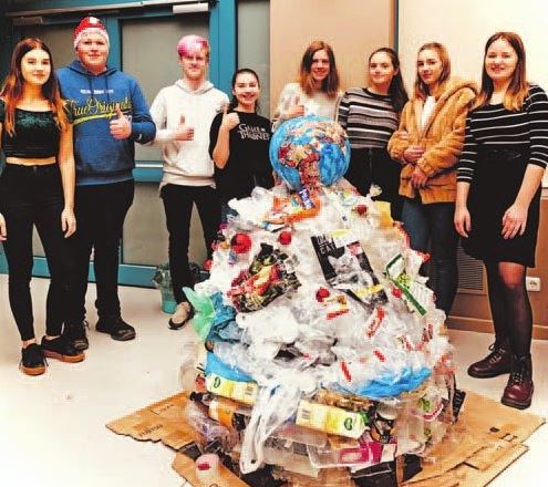 Ein selbst gebastelter Weihnachtsbaum, bestehend aus so viel Plastikmüll, wie eine Familie in Deutschland ihn im Durchschnitt über die Weihnachtsfeiertage verbraucht – das ist der Beitrag, mit dem Zehntklässler der Kooperativen Gesamtschule Recknitzcampus in Laage einen ersten Platz beim landesweiten Bibelwettbewerb gewonnen haben, dotiert mit 1000 Euro.