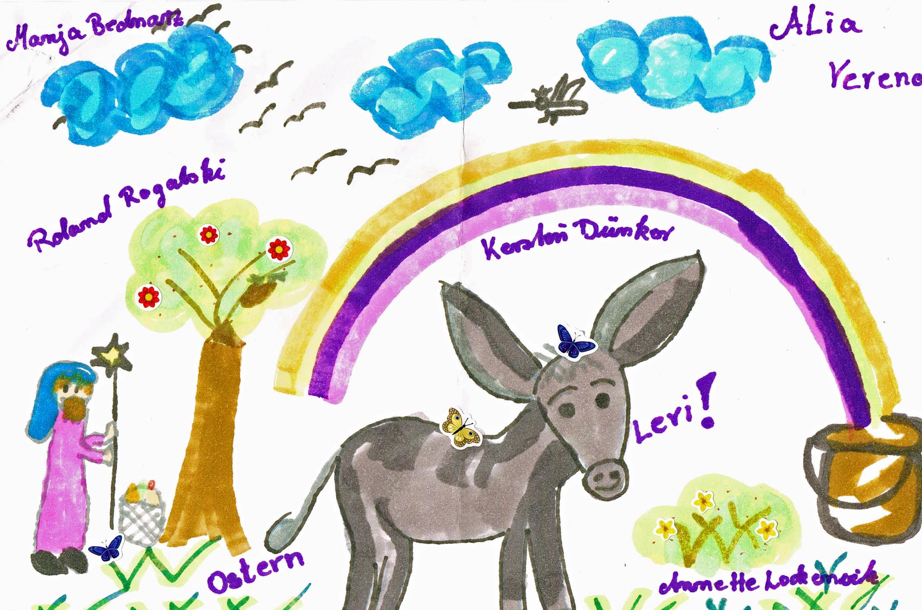 Und was macht Levi? Der Esel macht erst einmal Urlaub, er gibt aber an seinen Kumpel Herbert ab, der die Kinder per Videobotschaft aufruft, an das Team der GemeindepädagogInnen roland.rogalski@elkm.de, kerstin.duenker-nestler@elkm.de, manja.bednarz@elkm.de oder annette.lockenvitz@elkm.de ihre Lieblingsgeschichte zu senden. Es geht also weiter. Und auch die nächste Aktion ist schon in Planung. „Liebe Kinder lasst Euch überraschen!“, blickt Gemeindepädagogin Kerstin Dünker-Nestler voraus.