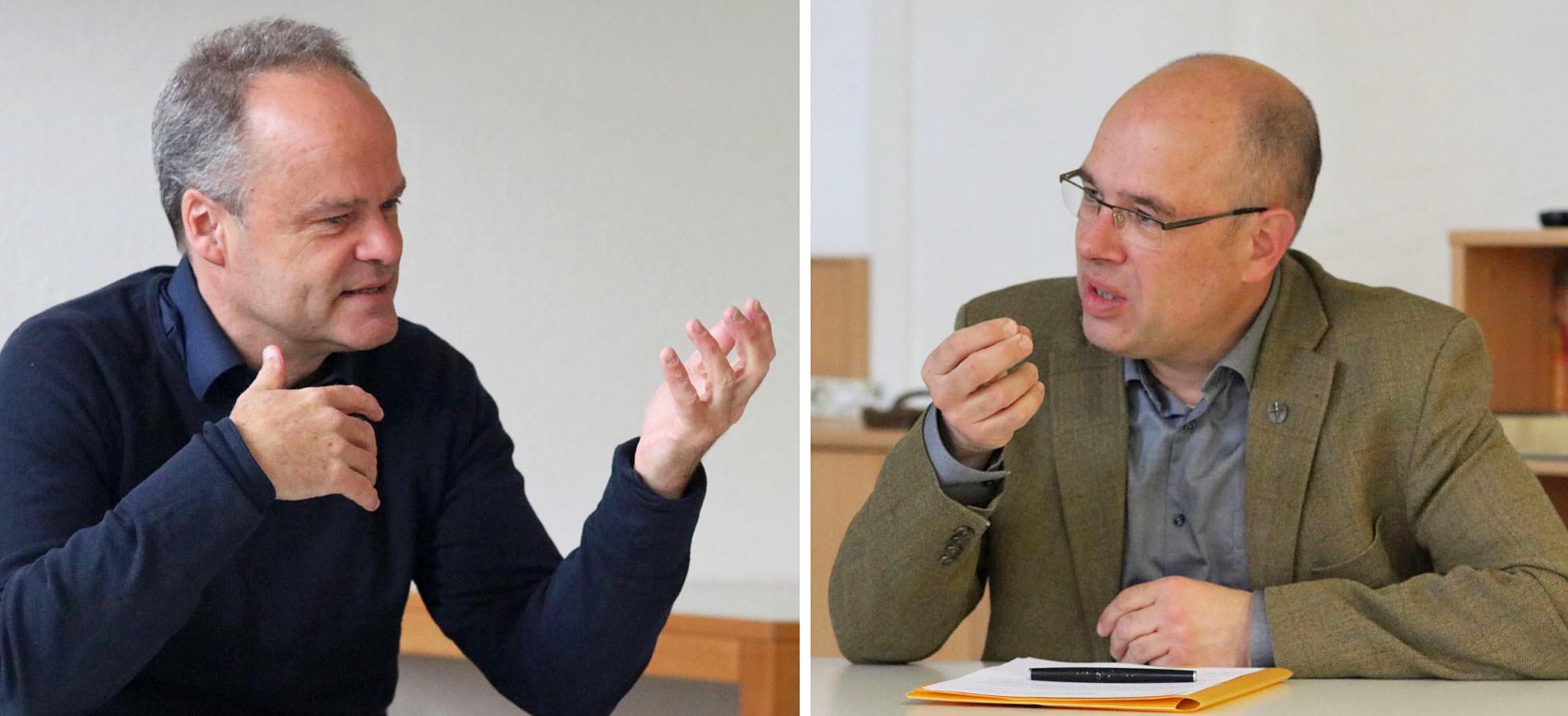 Der evangelische Bischof Tilman Jeremias (li.) und der katholische Propst Frank Hoffmann (re.) im Gespräch