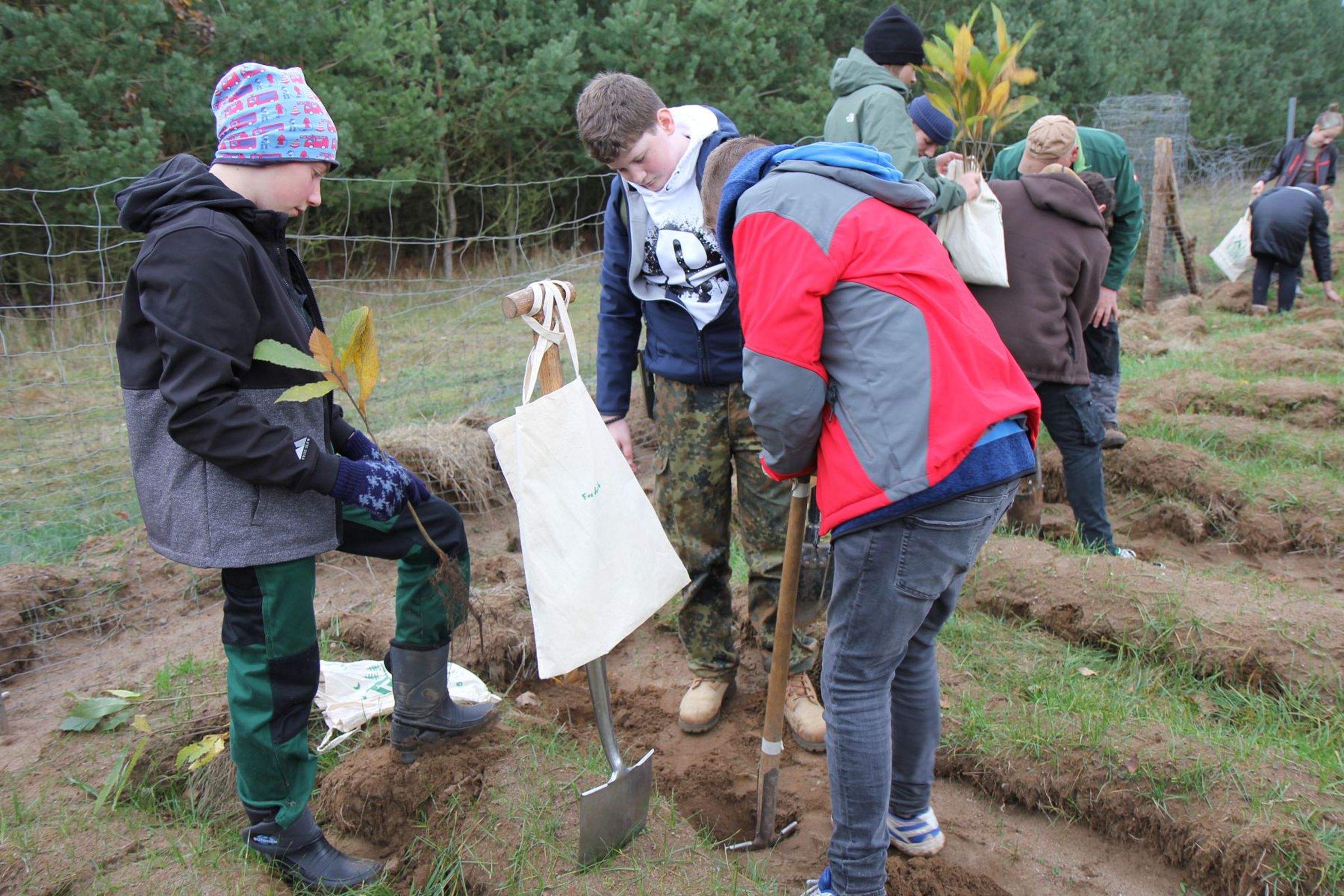 Jugendliche aus dem Kirchenkreis Mecklenburg setzen Zeichen für Klimaschutz 5000 Esskastanien in den Waldboden gepflanzt
