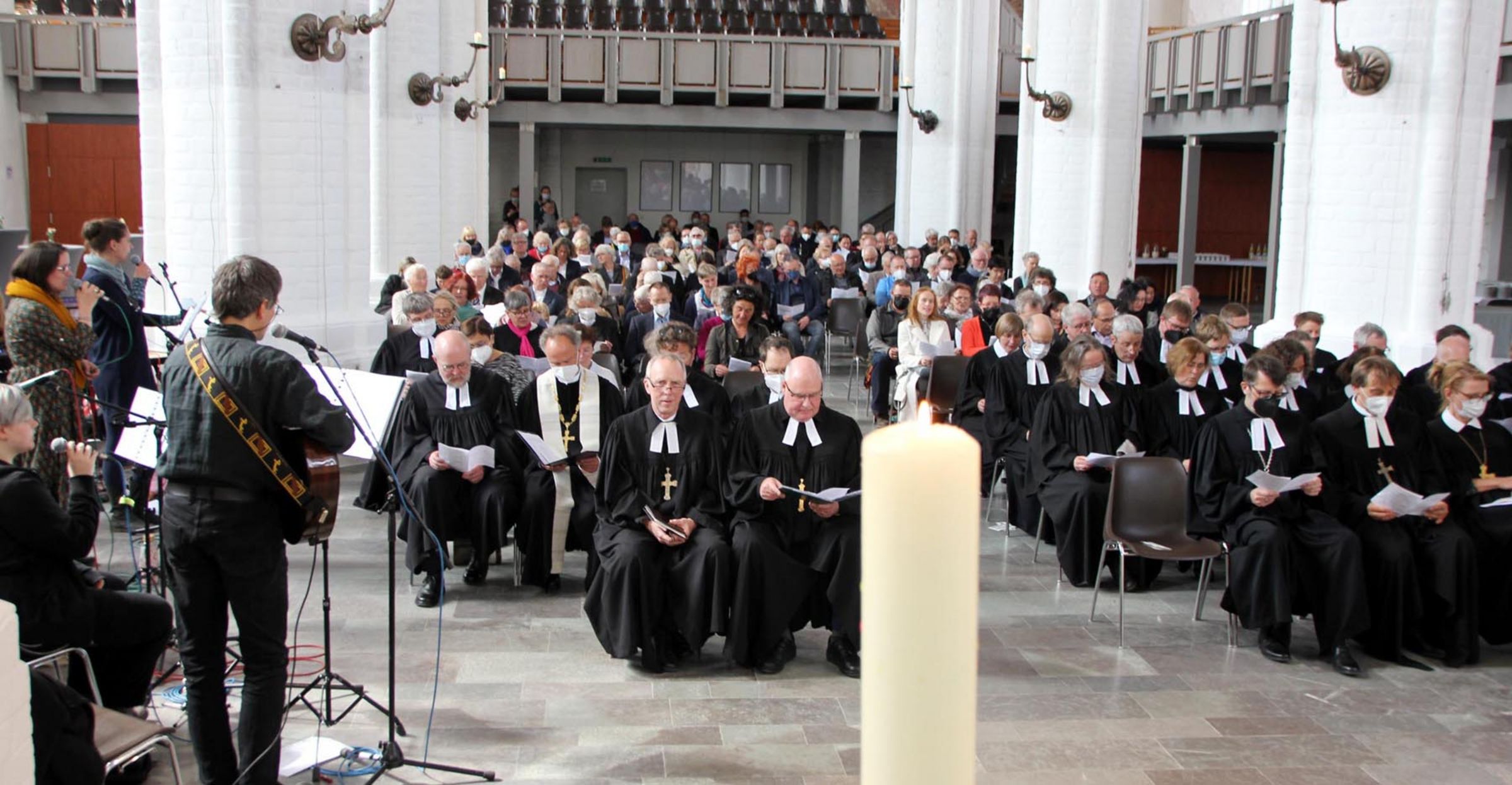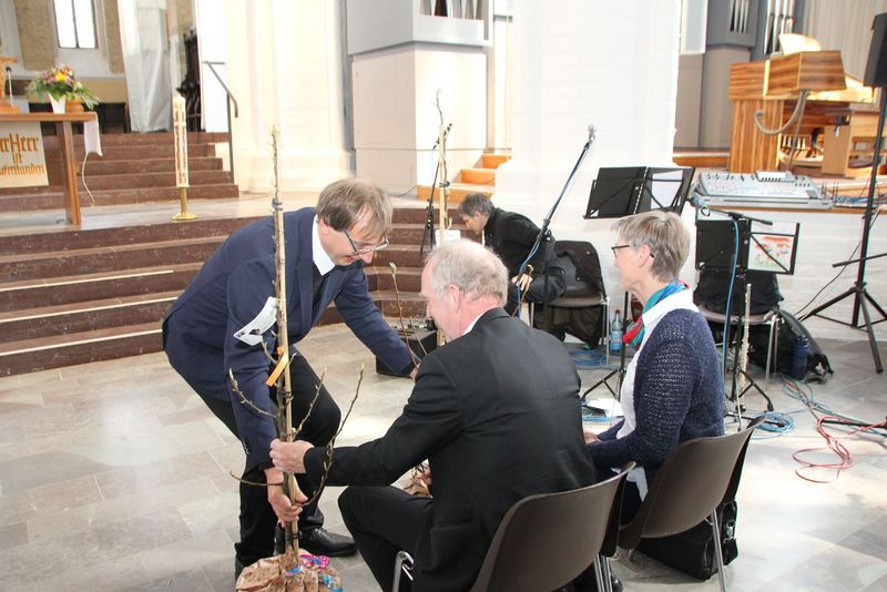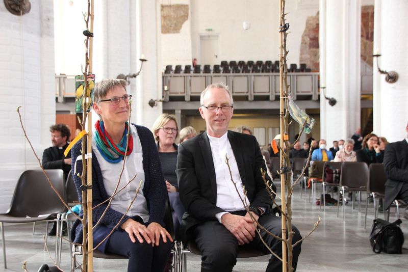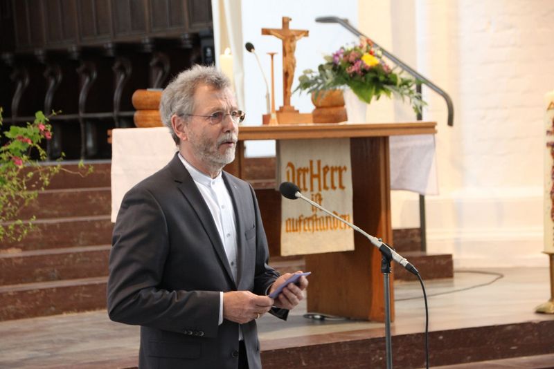 In seiner Predigt zuvor hatte Propst Schünemann im Blick auf seine Kirche dazu aufgerufen, hoffnungsvoll zu sein, trotz der Risiken des Christseins und vieler bedrückender Umstände in Gesellschaft und Kirche, wie Pandemie, Krieg, weltweite Ungerechtigkeit, zerstörender Klimawandel, sinkende Mitgliederzahlen, Pfarrstellenkürzungen, Zusammenlegungen von Gemeinden und Menschen, die sich und anderen im Weg stehen oder gar die Beine weghauen.