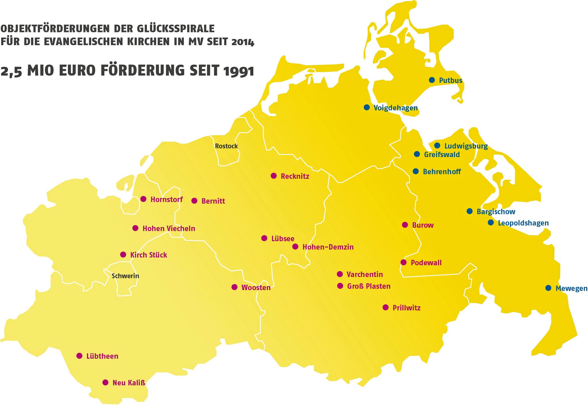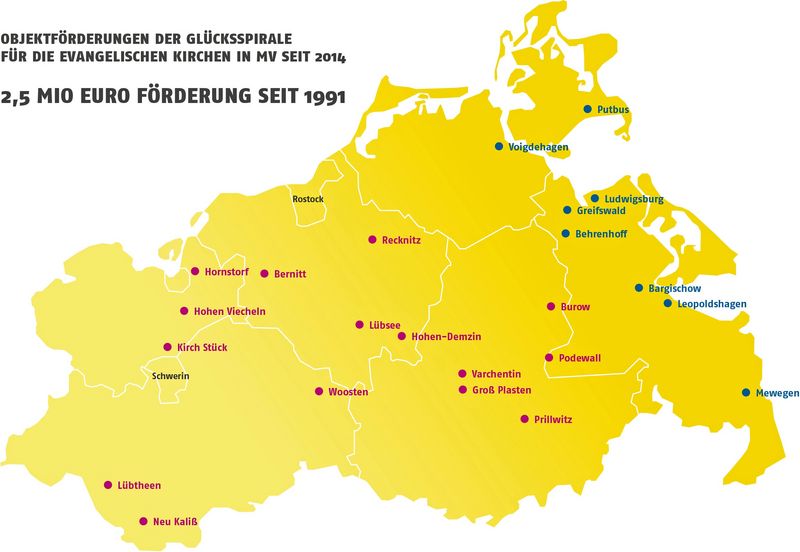 21.04.2022 · Lübtheen/Rostock. Die richtigen Zahlen: Allein seit 2014 hat die Landeslotteriegesellschaft über Mittel der GlücksSpirale 24 Projekte im Bereich der kirchlichen Denkmalpflege mit rund 721.000 Euro gefördert. Seit 1991 – dem Jahr als erstmalig die Losnummer der GlücksSpirale im Nordosten gezogen wurde – sind es sogar 2,5 Millionen Euro. Die durchschnittliche Ausstattung des „Notfallfonds“ für Kirchenbauprojekte, deren Finanzierung gefährdet ist, stieg von anfänglich rund 81.000 auf mittlerweile jährlich 88.000 Euro. Darüber hinaus bekommen der Deutsche Olympische Sportbund (DOSB), die Bundesarbeitsgemeinschaft der Freien Wohlfahrtspflege (BAGFW) und die Deutsche Stiftung Denkmalschutz (DSD) beachtliche Zuwendungen aus den Lotterie-Erträgen der GlücksSpirale.