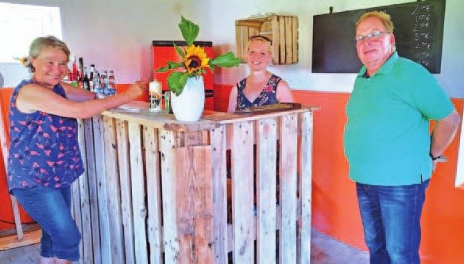 Gerade erst fertig ist die „Veranda“, ein kleines Häuschen. Sie kam zum ersten Mal nach dem Konzert mit Dirk Zöllner Mitte Juli in Nutzung. Joachim Düwel, langjähriges Kirchengemeinderatsmitglied, meinte, aus dem früheren Apfelkeller, dann Lagerraum, könne man doch etwas machen. Eine Bar zum Beispiel, einen Ort, an dem man Getränke nach Veranstaltungen ausschenken kann. Pastorin Katharina Gladisch und der Schatzmeister des Vereins, Alexander Wolsza sowie Düwel starteten einen Arbeitseinsatz, und innerhalb kürzester Zeit war die „Veranda“ genannte Bar fertig. Sie ist frisch gestrichen, mit einem Tresen ausgestattet, an der Wand hängt eine Angebotstafel – mit moderaten Preisen für Getränke. Der Weg von der Kirche zur Bar ist viel dichter als zum Pfarrhaus, und im Sommer kann man sich auf die Wiese setzen.