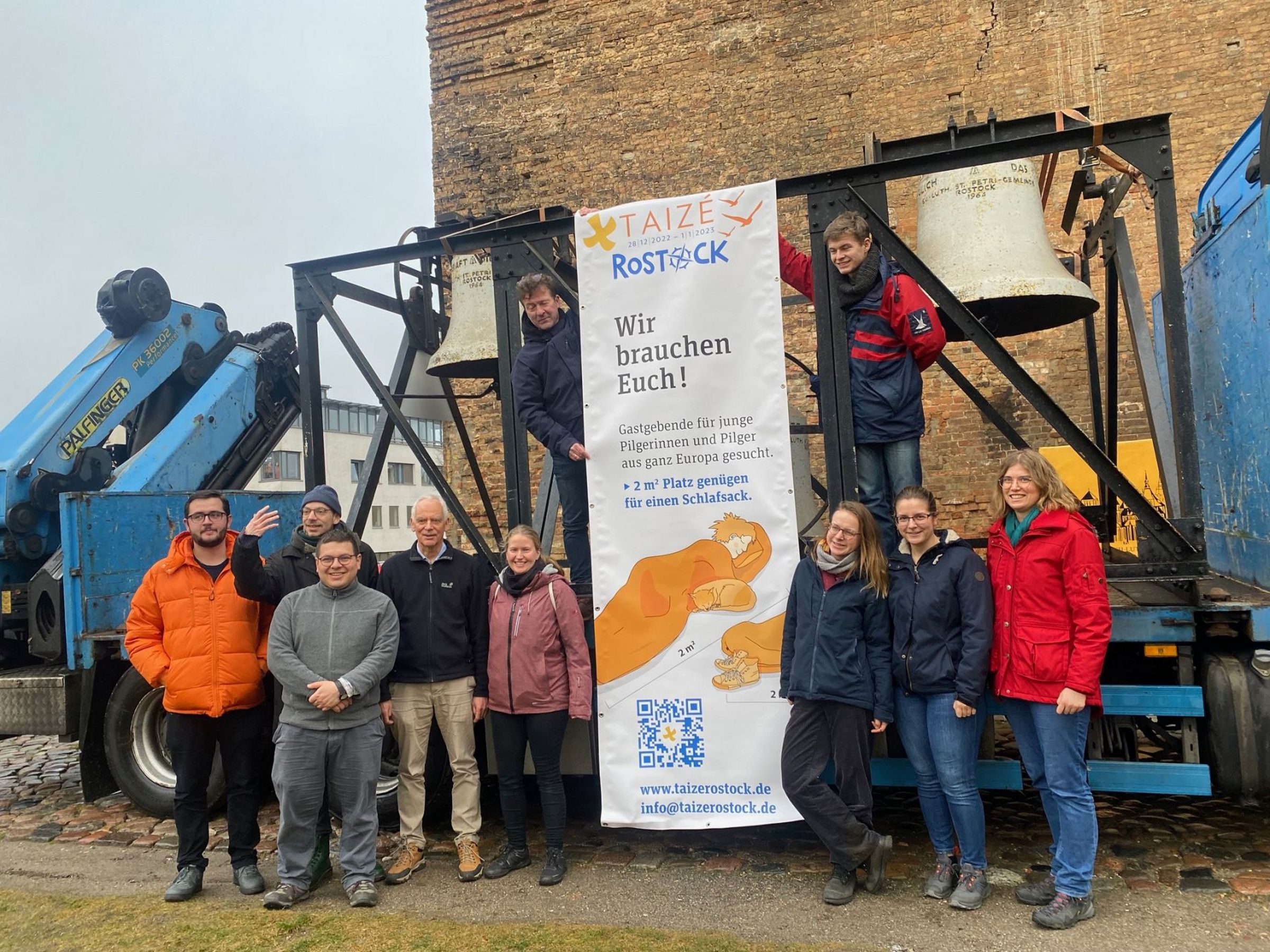 „Die drei Glocken sollen während des Jugendtreffens, zu dem insgesamt rund 5000 junge Europäer und Tagegäste erwartete werden, mittags und abends zum Gebet läuten. So wie sie es in den vergangenen Monaten bereits zu den Taizé-Gebeten in der Petrikirche getan haben“, sagt Pastor Albrecht Jax. Der mecklenburgischer Koordinator für das Jugendtreffen freut sich, dass diese spontane Idee von allen Seiten unterstützt wurde. Nur etwas mehr als eine Woche habe es gedauert – bis Kirchengemeinderat der Innendstadtgemeinde, Tiefbau- und Straßenverkehrsbehörde alle Genehmigungen für den zeitweiligen Umzug des Geläuts erteilten. „Ist doch schön, dass in Rostock kein Geläut vom Tonband kommt, sondern Glocken live angeschlagen werden“, fügt Pastor Jax hinzu.