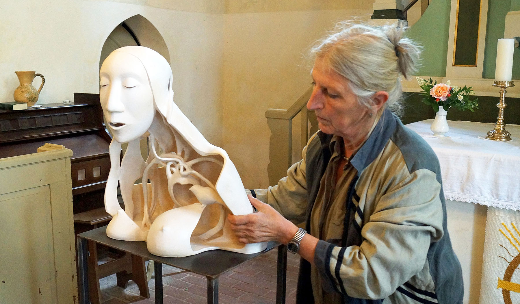 Die Feldsteinkirche wird zum Schauplatz einer Symbiose aus Musik und Kunstinstallation, wenn die beiden Veranstaltungsreihen „Dorfkirche Mon Amour“ und Dorf.Kirche.Klingt“ zusammentreffen. Die Veranstaltungsgäste erleben ab 16 Uhr, wie Tabea Höfer auf der Barockvioline und Marek Stawniak auf dem Akkordeon „Tango&Bach“ intonieren und dabei begleitet werden von den temporären Installationen der Künstlerin Ines Diederich. Den Eingang der Kirche umrahmt die Bildhauerin und Landart-Künstlerin mit einem Kranz aus Dornen, der von den Besucherinnen und Besuchern zunächst durchschritten wird, bevor der schwebende Kranichschwarm über der Skulptur „Prayer of hope“ im Altarraum sichtbar wird. Die Installation symbolisiere eine Zuflucht in Zeiten der Bedrohung und betone die Wirkung der Kirche als „ein spirituelles Nest der Geborgenheit“, sagt die Künstlerin über ihre Intention. Der Eintritt zu der Konzertveranstaltung ist frei. Im Anschluss lädt die Kirchengemeinde zu einem offenen Picknick und Gesprächen auf dem Kirchhof ein.