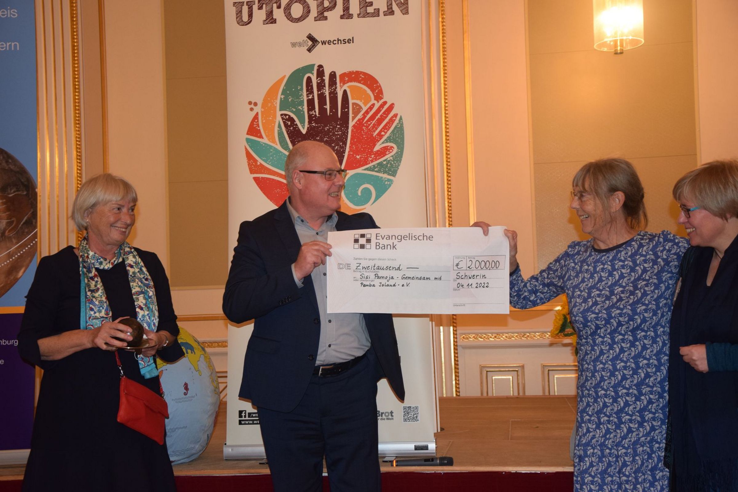 „Alle Projekte des Vereins sind getragen von einer tiefen Verbundenheit und Freundschaft zwischen starken und engagierten Frauen – sowohl in Mecklenburg-Vorpommern als auch auf Pemba in Tansania“, sagte der mecklenburgische Propst Dirk Sauermann, der die Laudatio bei der Preisverleihung hielt. Die Auszeichnung fand anlässlich der Eröffnung der „WeltWechsel-Tage 2022“ in MV statt, die in diesem Jahr unter dem Motto „Utopien“ stehen.