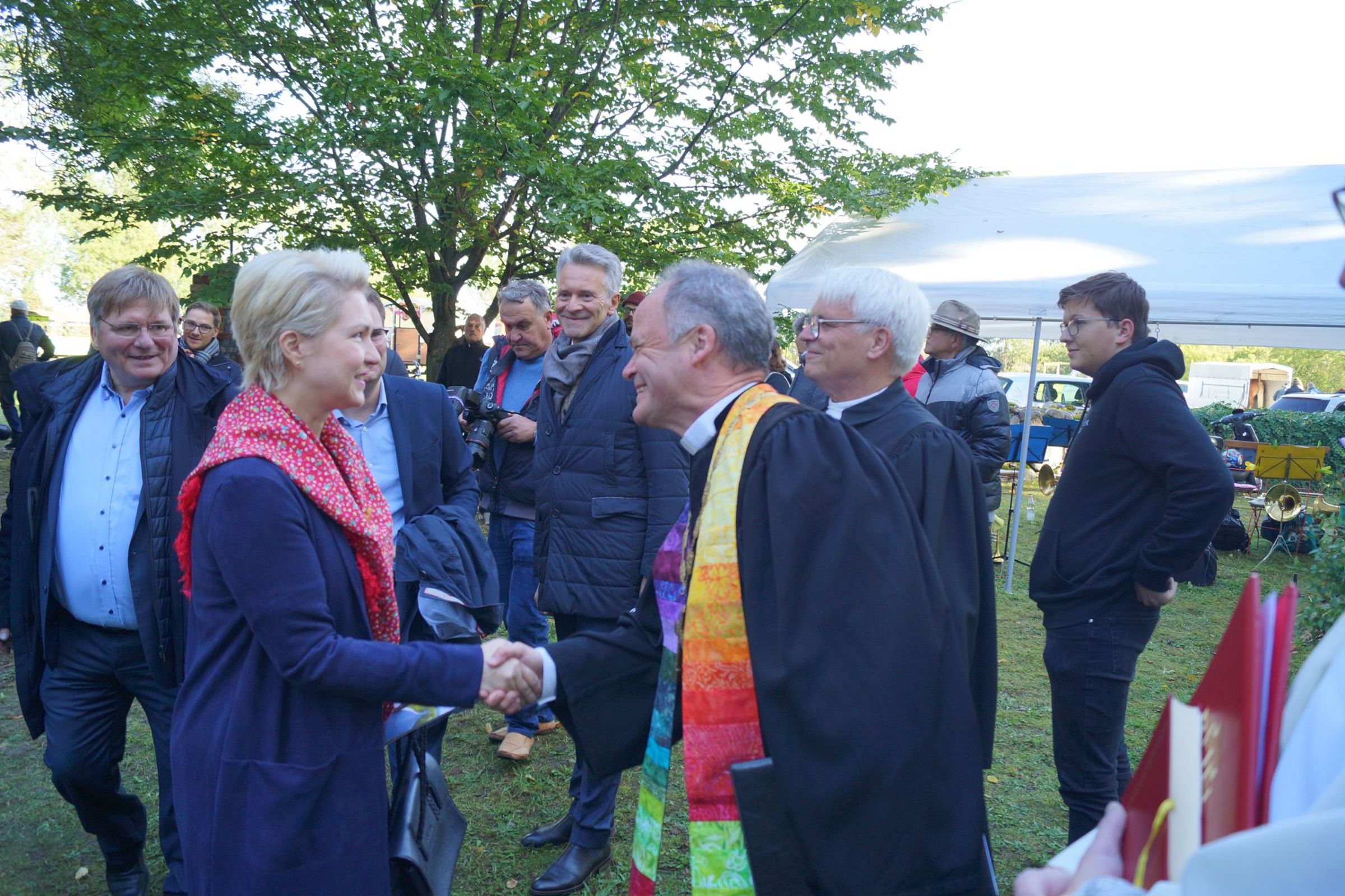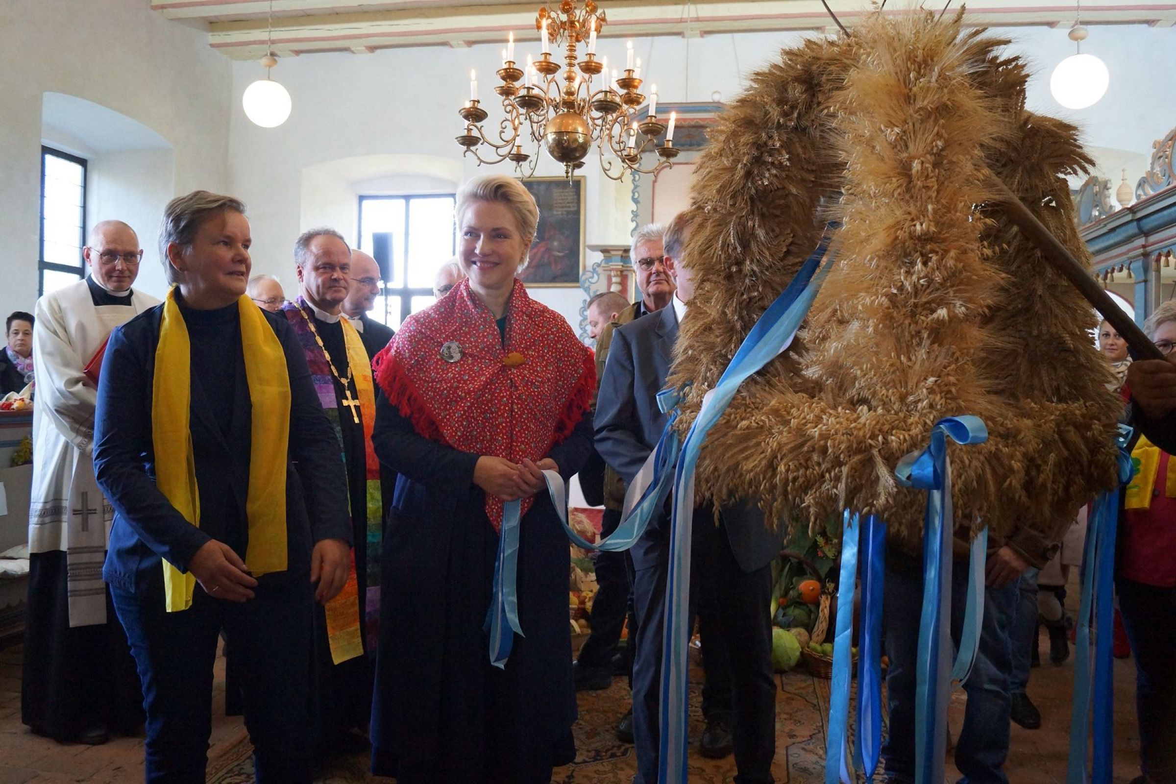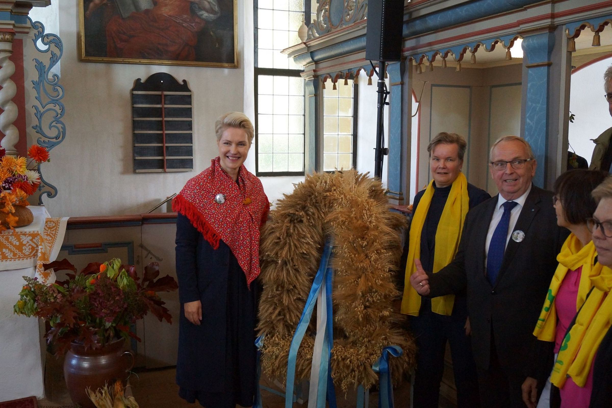 Das gute Miteinander von Kirche, Kommune und Land wurde dadurch unterstrichen, dass Ministerpräsidentin Manuela Schwesig in der Kirche ihr Grußwort sprach. Sie sagte: „Ich freue mich darüber, dass wir in diesem Jahr gemeinsam das Landeserntedankfest in Ferdinandshof feiern. Wir würdigen damit die Arbeit der in der Landwirtschaft Beschäftigen. Und wir erinnern daran, dass es nicht selbstverständlich ist, dass wir genug zu essen und gute Lebensmittel haben.“