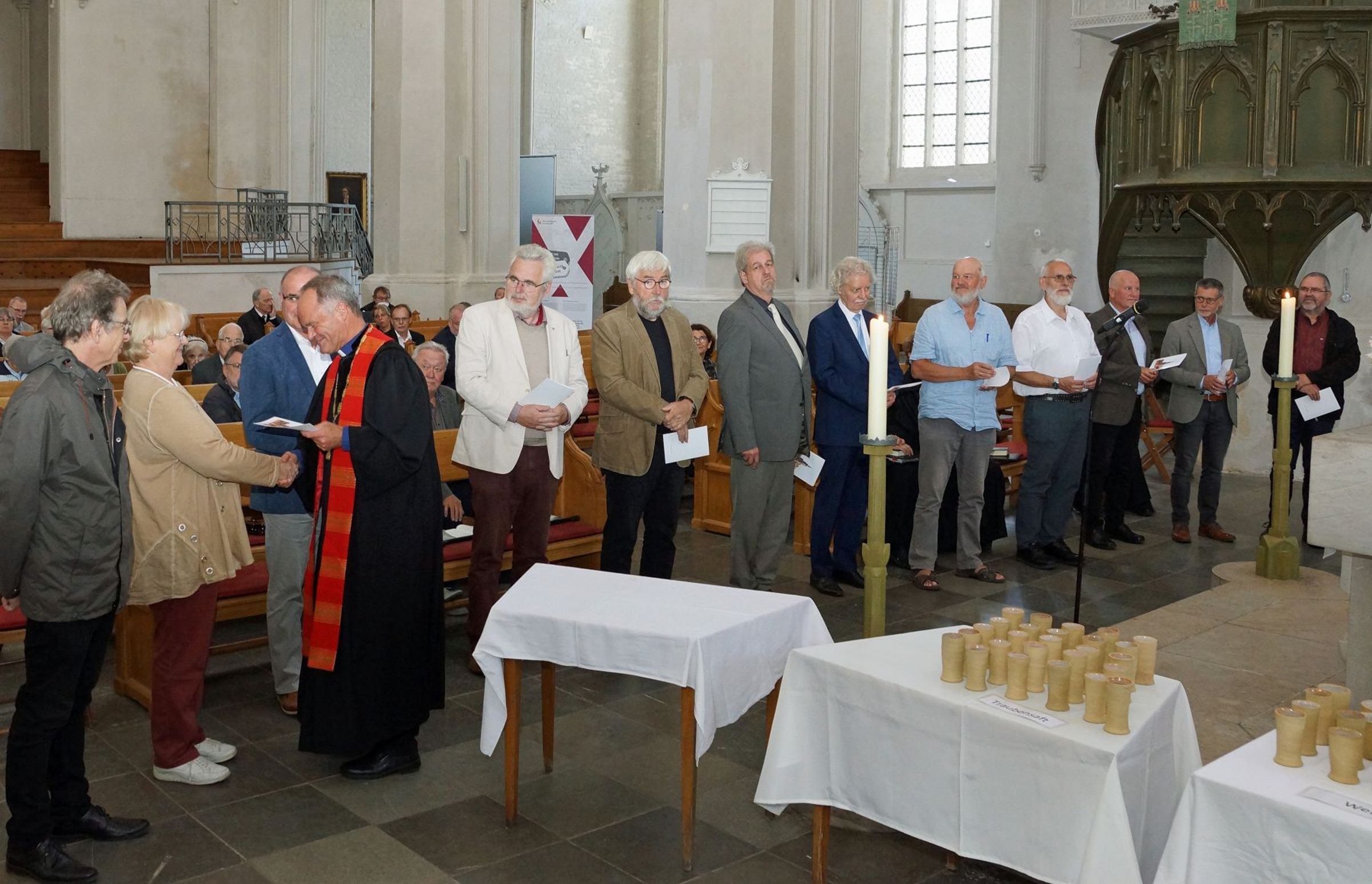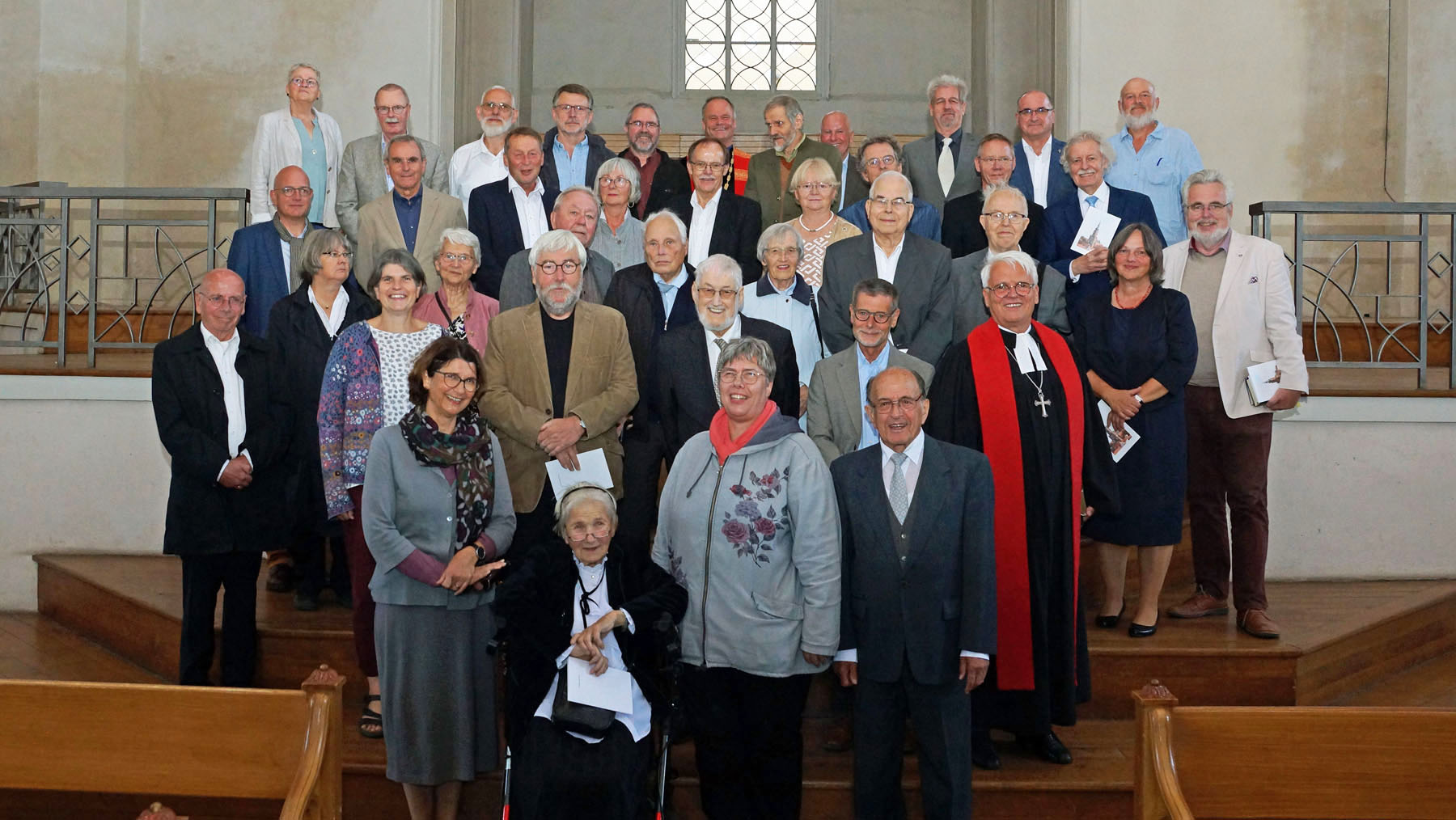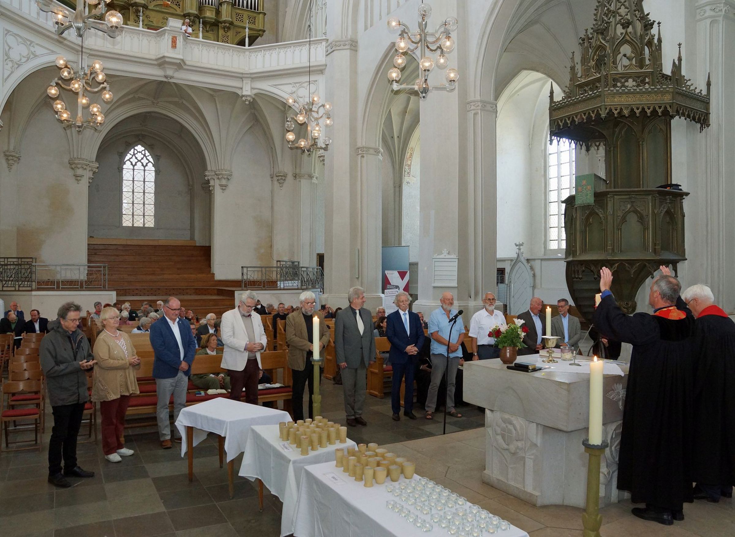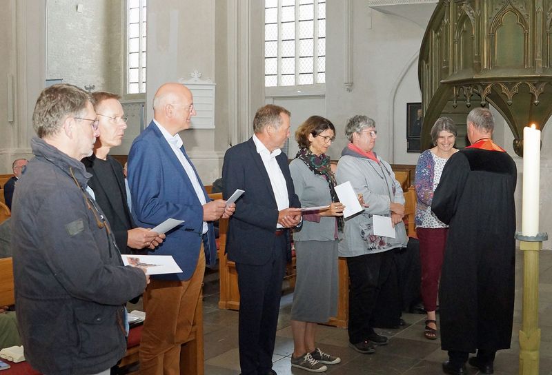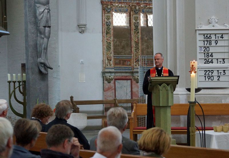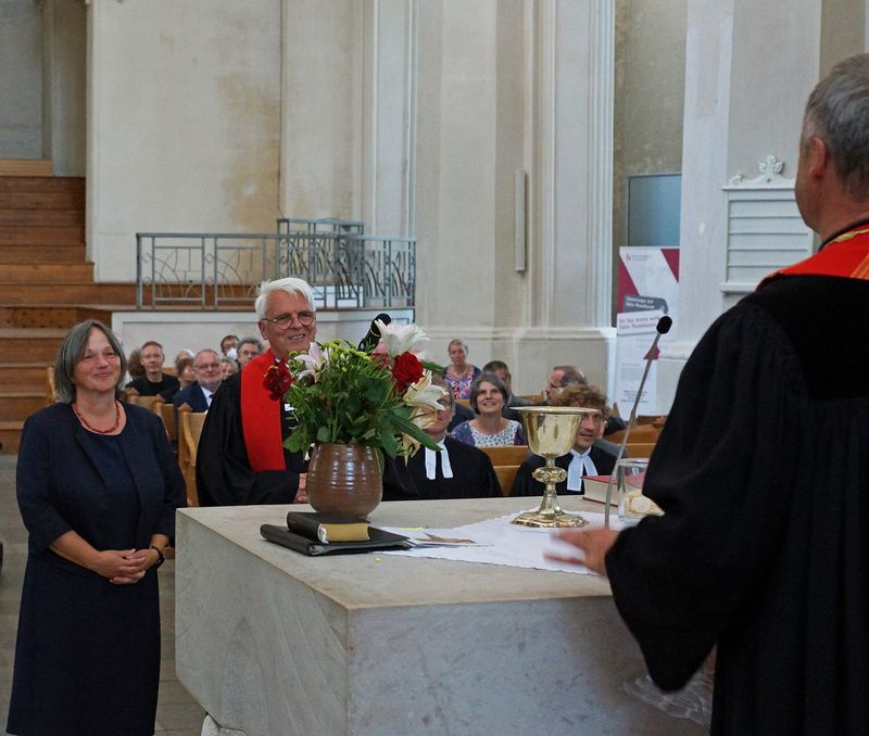 Im Festgottesdienst rief Bischof Tilman Jeremias in vier Gruppen alle Jubilare auf und dankte Ihnen für Ihren Dienst in der Kirche. "Ich hoffe sehr, dass jede und jeder von ihnen den Blick zurück zur Ordination, aber auch auf die Zeit Ihres Dienstes mit Dankbarkeit im Herzen wenden kann, mit Freude über alles Gelungene und Barmherzigkeit Ihnen selbst gegenüber für alles Liegengebliebene und Unvollendete."