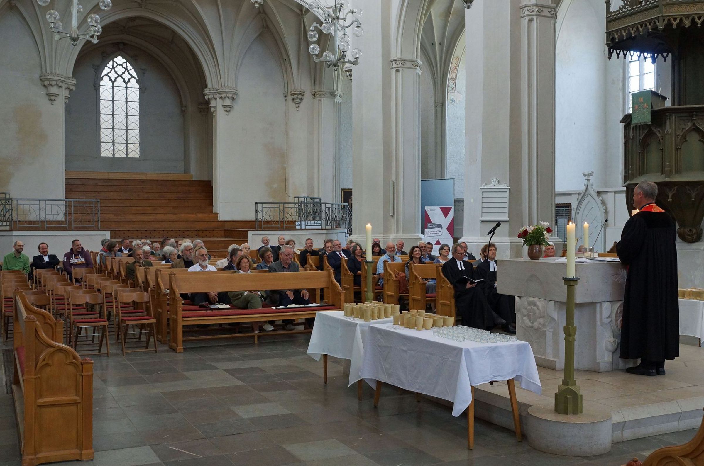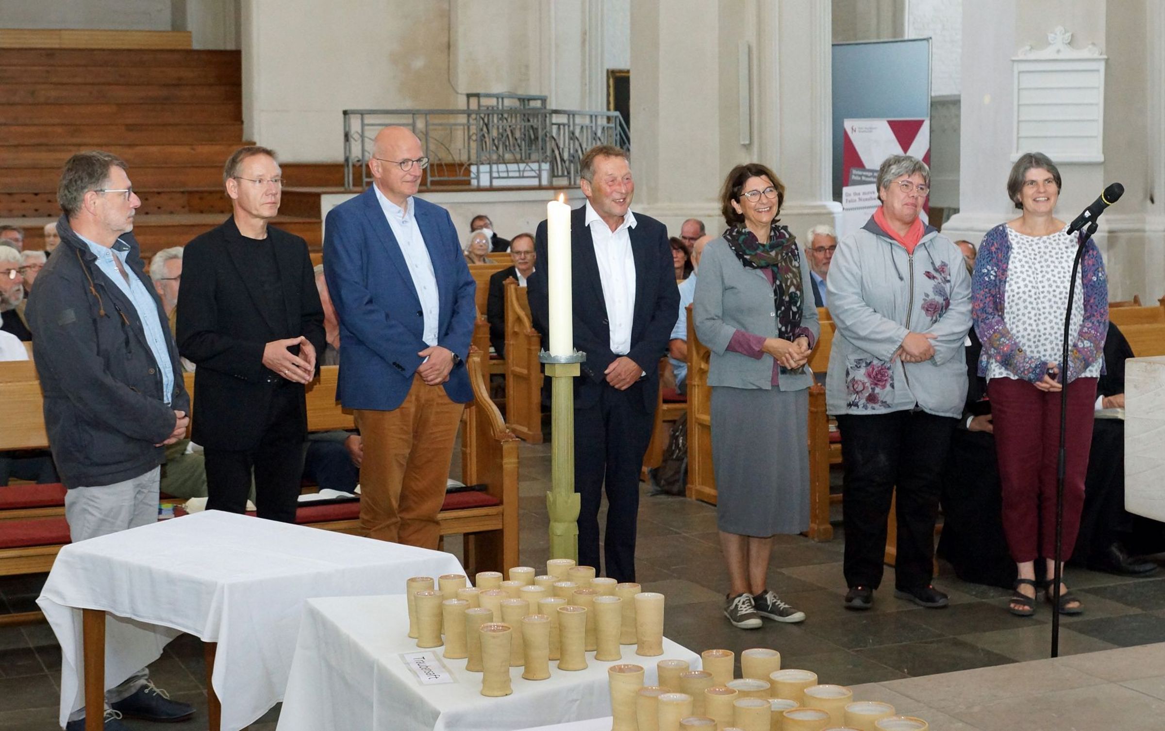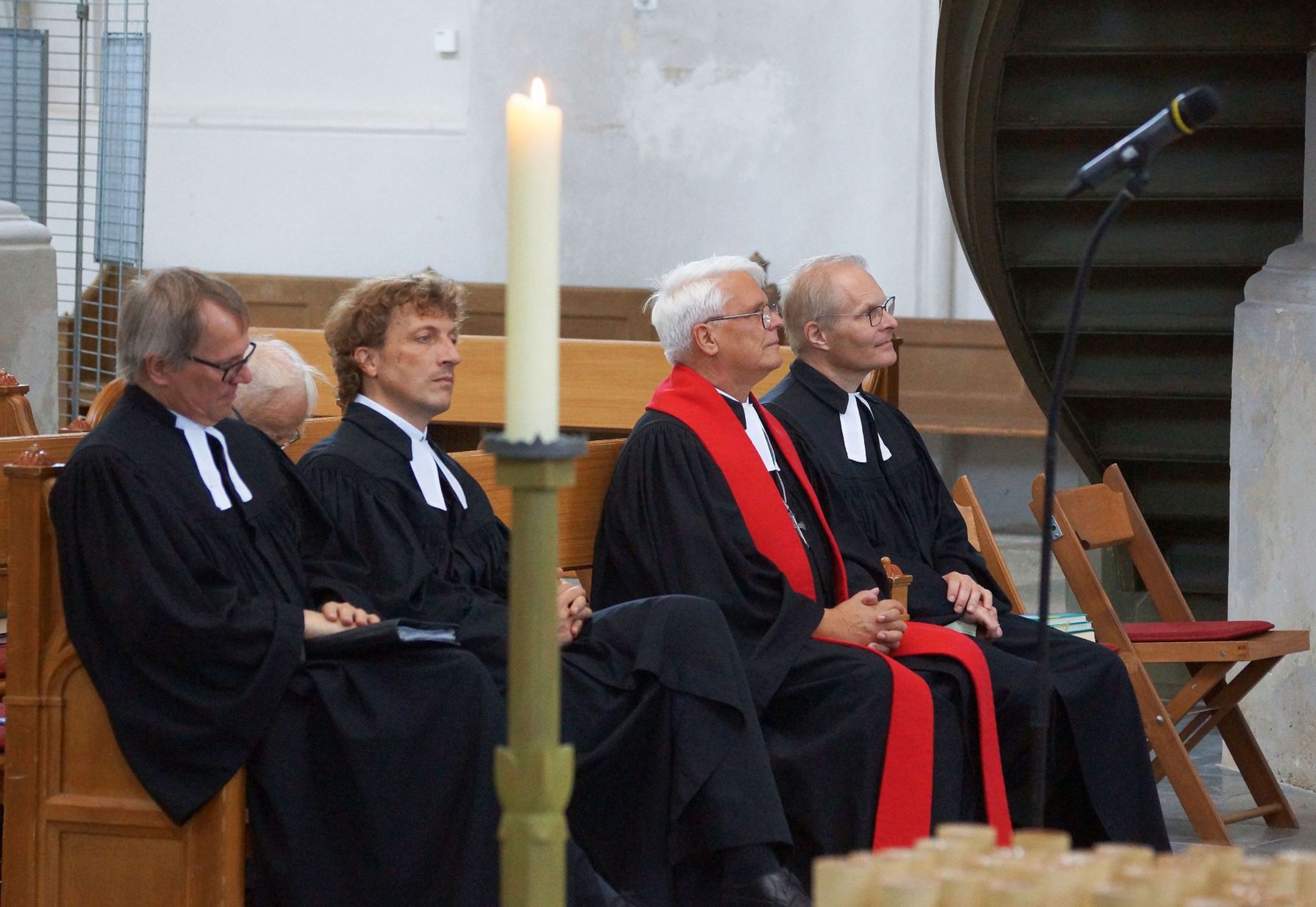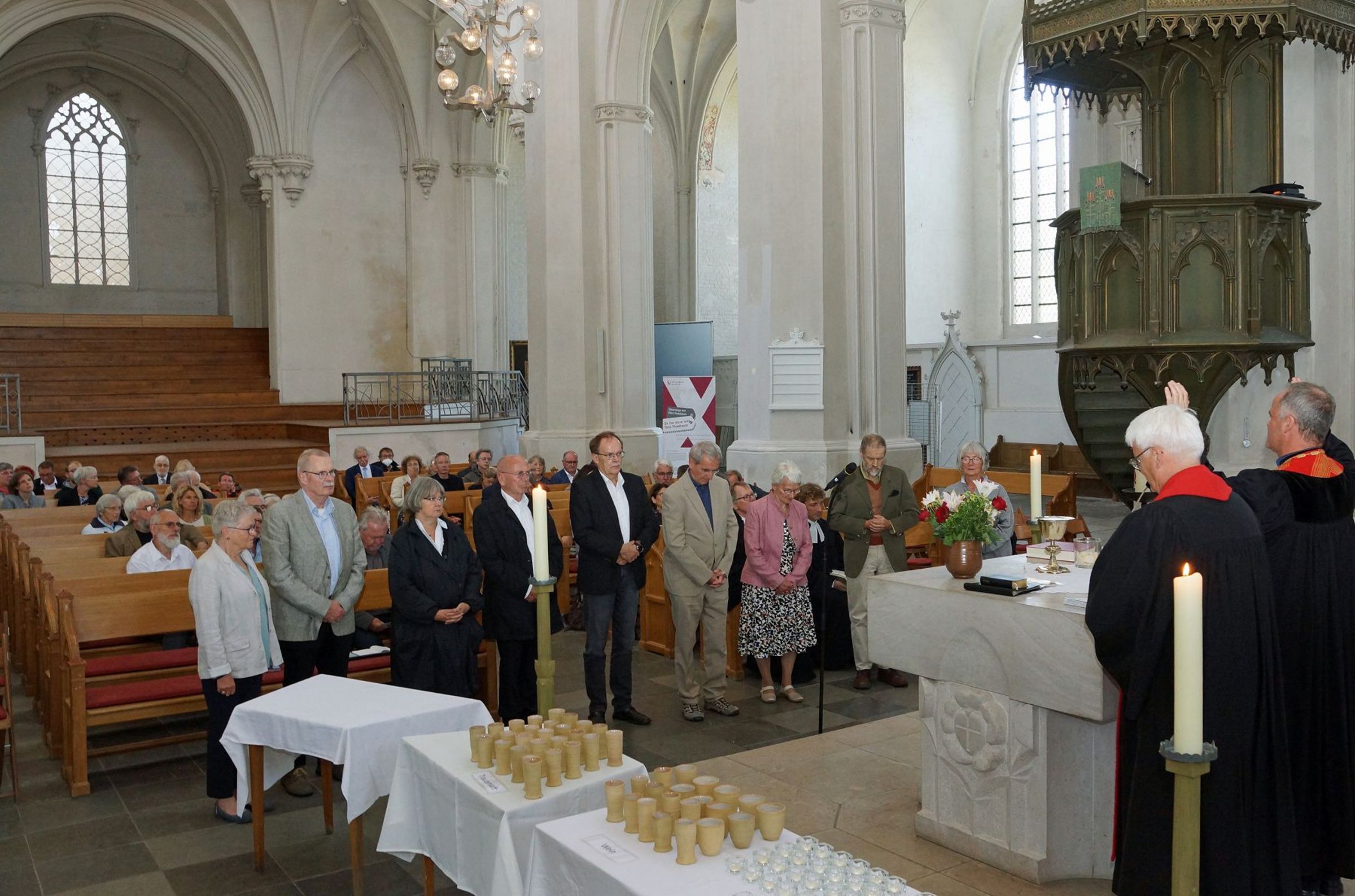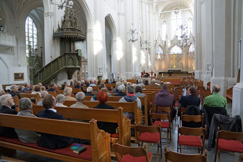 Im Festgottesdienst rief Bischof Tilman Jeremias in vier Gruppen alle Jubilare auf und dankte Ihnen für Ihren Dienst in der Kirche. "Ich hoffe sehr, dass jede und jeder von ihnen den Blick zurück zur Ordination, aber auch auf die Zeit Ihres Dienstes mit Dankbarkeit im Herzen wenden kann, mit Freude über alles Gelungene und Barmherzigkeit Ihnen selbst gegenüber für alles Liegengebliebene und Unvollendete."