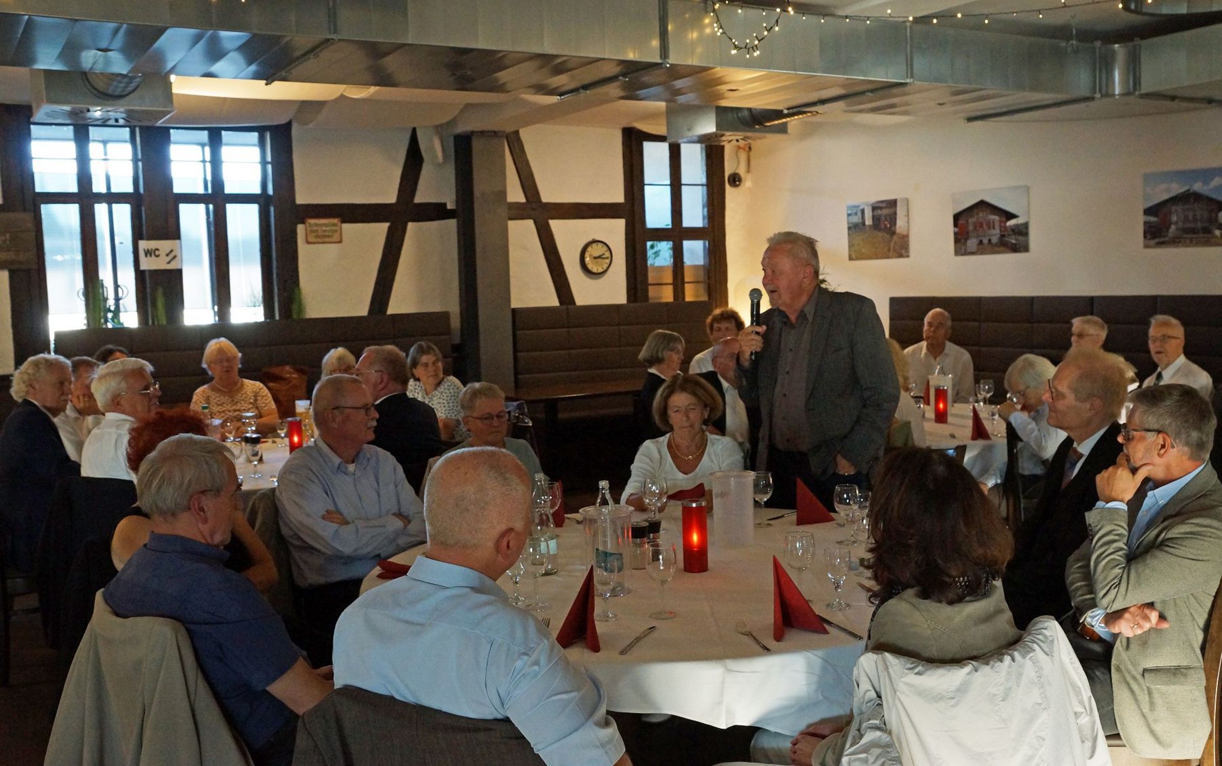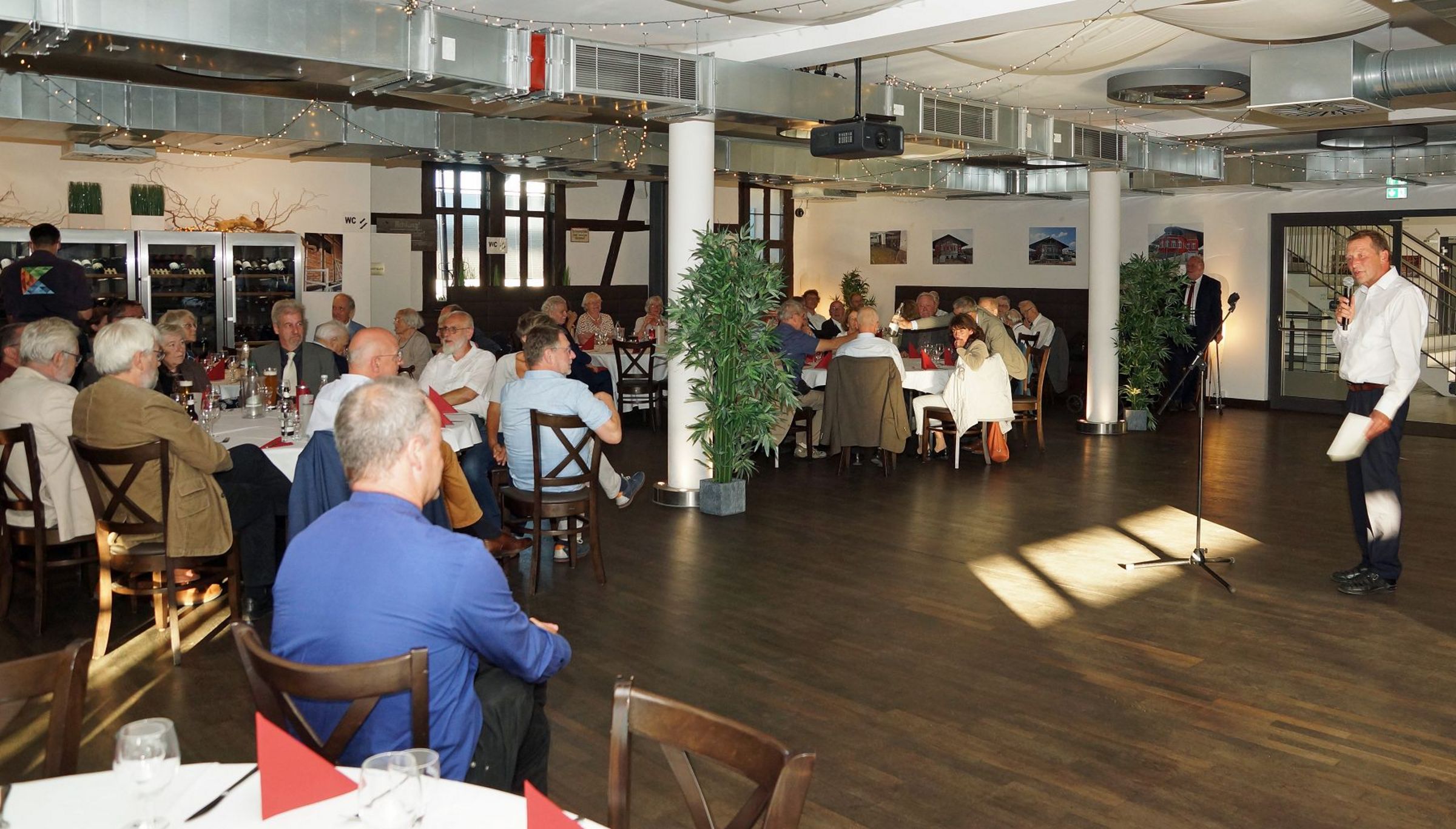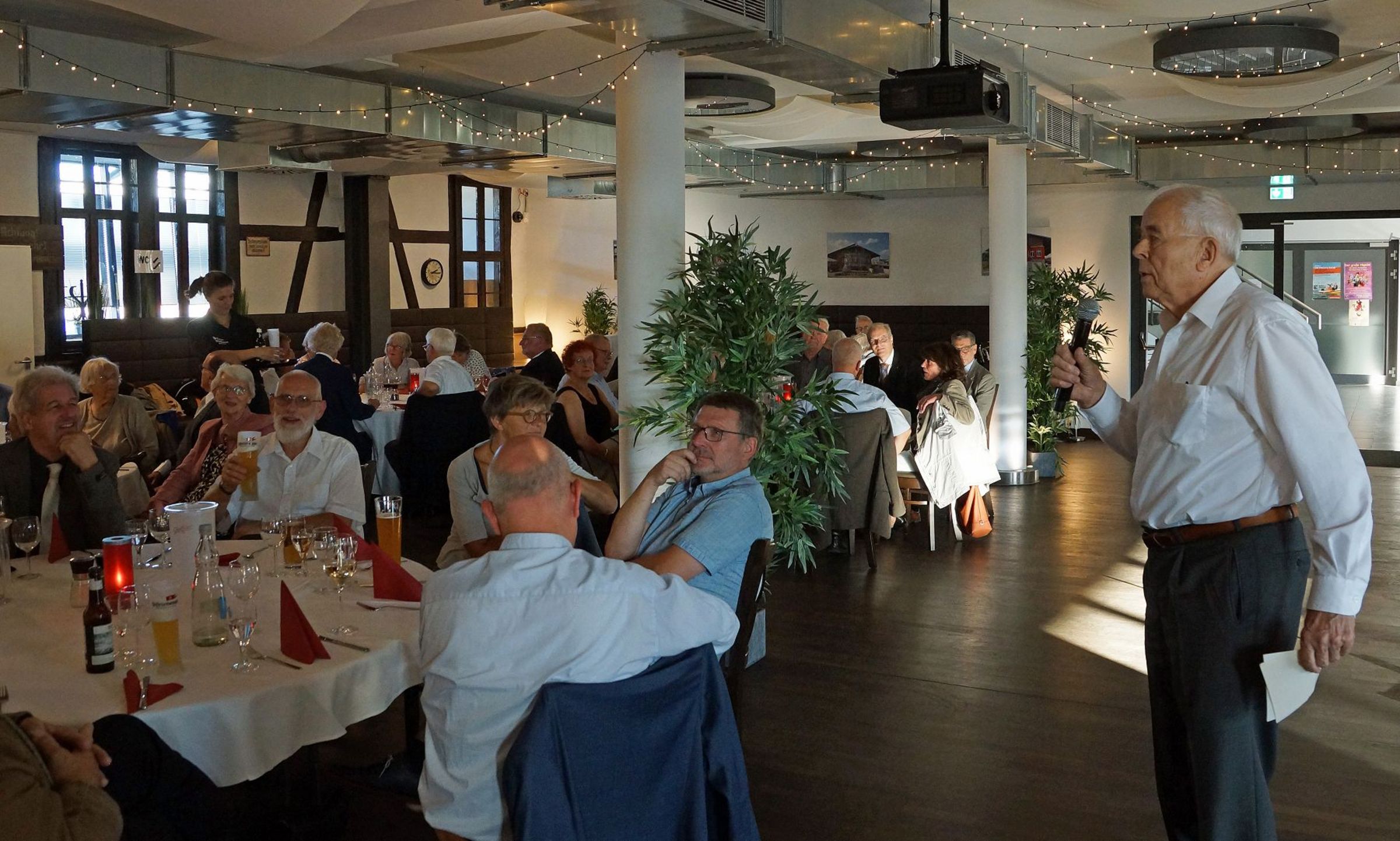 Tilman Jeremias Wunsch, dass der Tag auch dem Austausch zwischen Pommern und Mecklenburg dienen möge, ging am Abend im Greifswalder "Kulturbahnhof" in Erfüllung. In festlicher Atmosphäre wurde erzählt und Erinnerungen ausgetauscht. Propst Gerd Panknin (35-jähriges Jubiläum) und Propst in Rente Karl-Matthias Siegert (30-jähriges Jubiläum) gaben Impulse aus Ihrer Dienstzeit und viele weitere Jubilare schlossen sich an.