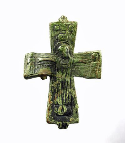 Der spektakulärste Fund ist ein ostkirchliches Enkolpion. Es wurde 2011 von einem ehrenamtlichen Bodendenkmalpfleger in Blengow bei Bad Doberan gefunden. „Bei einem Enkolpion handelt es sich um ein meist aus Bronze gegossenes, zweiteiliges hohles Klappkreuz, das als Pektoral, also als Kettenanhänger vor der Brust, getragen wurde. Im Inneren befanden sich eine oder mehrere Reliquien“, schreibt Alexander Sakuth in seiner Untersuchung in „Archäologische Berichte aus Mecklenburg-Vorpommern“ (Beiheft 15, 2016). Zu den altgriechischen großen Buchstaben unter den Kreuzesarmen, schreibt er: „somit lassen sich die Inschriften zweifelsfrei als eine Wiedergabe aus dem Johannesevangelium (Johannes 19,26-27), nämlich dem dritten der sieben letzten Kreuzesworte Christi, identifizieren“. Dargestellt ist Jesus Christus am Kreuz mit geneigtem Haupt. Er trägt ein ärmelloses Gewand, das bis zu den Knöcheln reicht, das Colobium. Auf dem Querbalken sind links Maria und rechts wohl der Jünger Johannes dargestellt. Über dem Kreuz sind Mond und Sonne zu sehen. Letzteres „findet sich in der ikonographischen Kreuzesdarstellung schon sehr früh in der byzantinischen Kunst und verweist (u. a.) auf den Weltherrschaftsanspruch Christi“, schreibt Alexander Sakuth. Wie das Enkolpion aus dem byzantinischen Bereich nach Blengow gekommen ist, liegt völlig im Dunkeln.