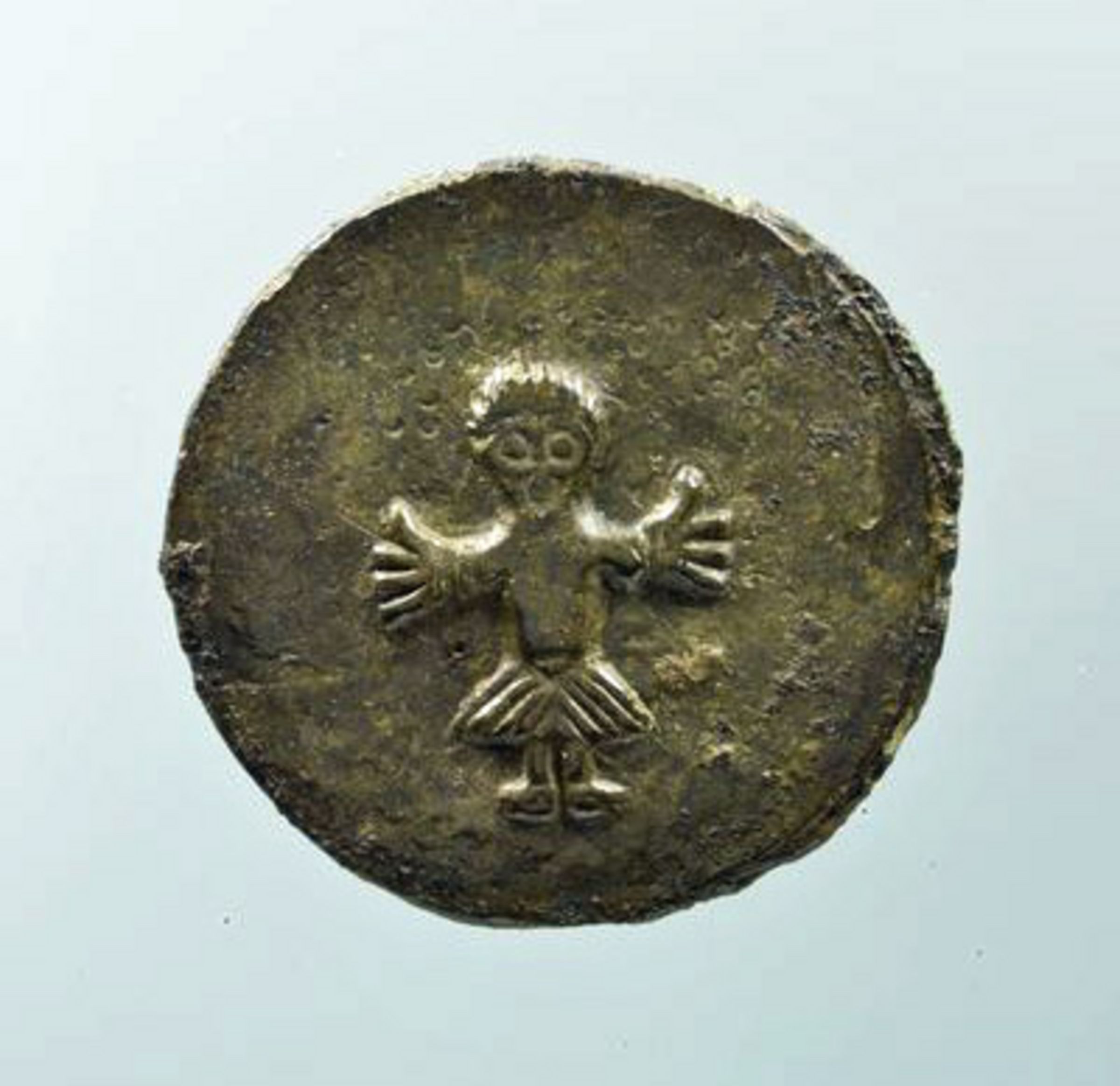 Im letzten August wurde ein beschädigtes Stück Metall in Ilow bei Neuburg, östlich von Wismar, zu Tage gefördert. Es lag im Boden einer Burganlage aus slawischer Zeit. „Das ist ein kreuzförmiges Stück“, erklärt Detlef Jantzen, „so eine Art dickes Blech, etwas verbogen und an einer Stelle gerissen. Einer der Arme des Kreuzes ist abgebrochen. Auf der Vorderseite ist klar zu erkennen, dass dort eine menschliche Figur abgebildet ist mit ausgebreiteten Armen, die Hände sind ausgestreckt. Die Figur trägt eine Art Rock und über der Figur kann man ein Kreuz erahnen“.