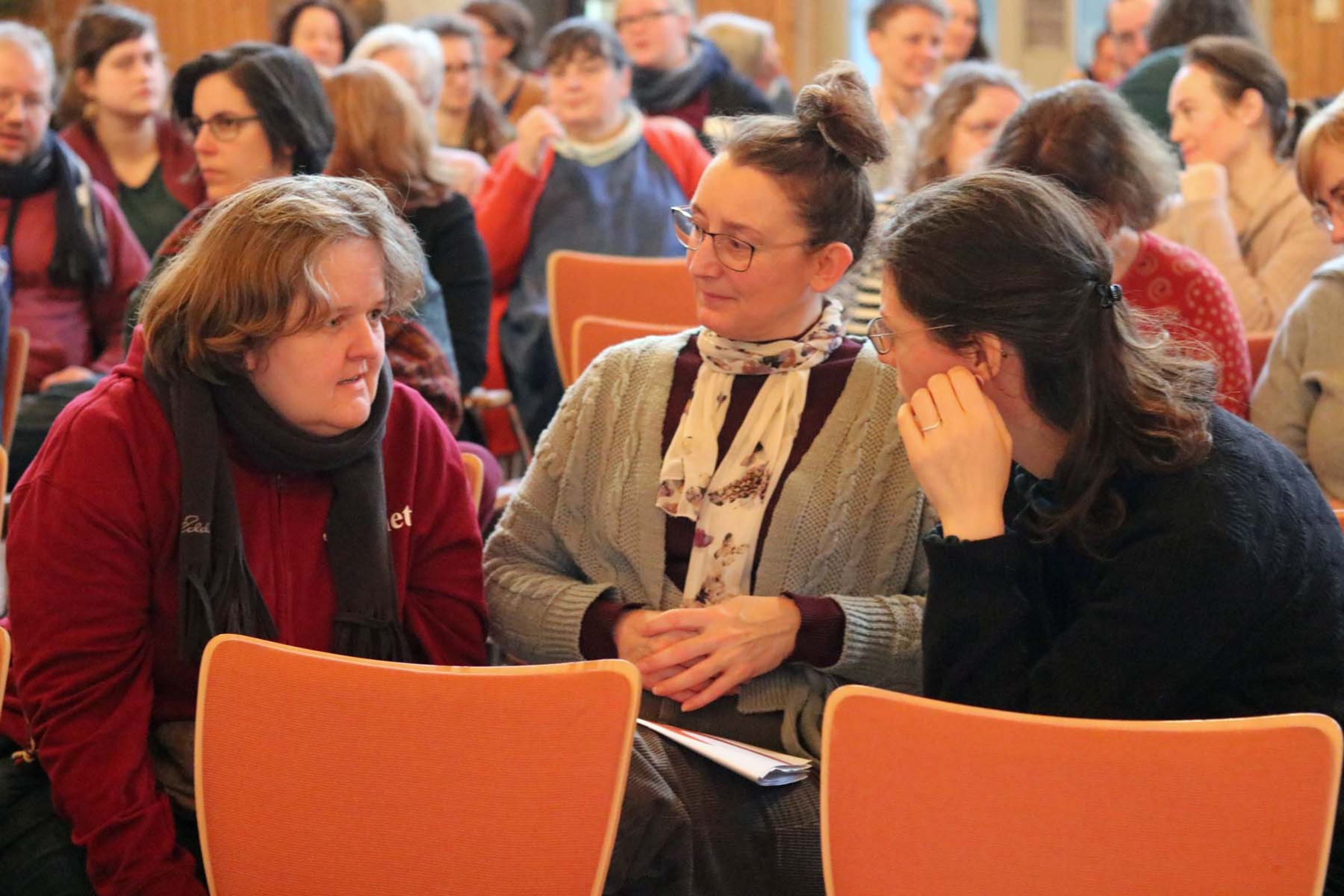 Bei der MAT informieren sich viele Religionspädagoginnen und -pädagogen über die Kunst, Geschichten zu erzählen: „Ich habe den Eindruck, dass das ein ganz wichtiger Aspekt ist für den Unterricht in der Schule, wegzukommen vom Arbeitsblatt hin zum Erzählen. Da haben wir mit den biblischen Geschichten einen Riesenschatz, da sind Themen drin, die sind universell. Gleichzeitig aber brauchts Übung, im Erzählen den Transfer zu machen, weil die biblischen Geschichten wortwörtlich in der Lutherübersetzung für die Jugendlichen meist nicht sonderlich attraktiv sind. Da sagt ein Achtklässler, was soll mir das sagen.“