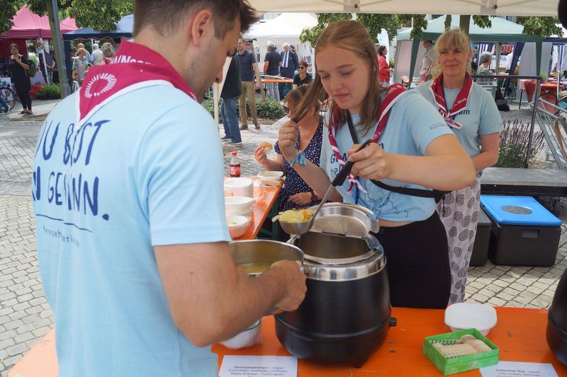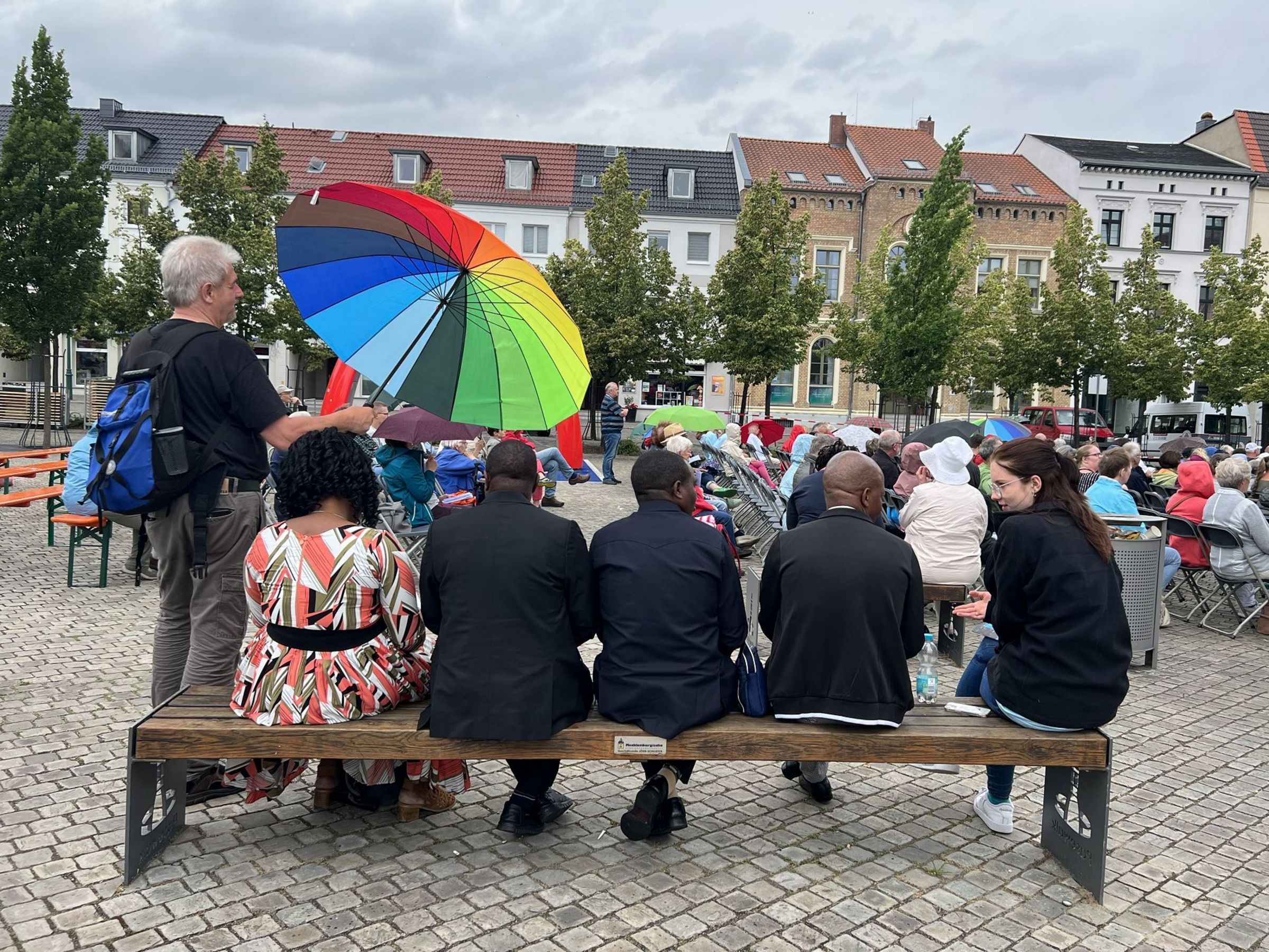 Zum Abschluss des ÖKT zogen Vertreterinnen und Vertreter der Aktiven vor Ort, der Steuerungsgruppe sowie der beteiligten Gemeinden ein positives Fazit. „Die Zusammenarbeit mit der Stadt Pasewalk war völlig unkompliziert und entgegenkommend. Wir haben uns hier sehr willkommen gefühlt“, sagt Gerrit Marx von der Ökumenischen Arbeitsstelle im Pommerschen Evangelischen Kirchenkreis. Zudem herrschte während des gesamten Tages ein Kommen und Gehen auf dem Markt und zwischen den einzelnen Veranstaltungsorten. Freiwillige teilten 1.500 Suppen aus. „52 deutsche und polnische Jugendlichen haben ab 7 Uhr morgens hier aufgebaut und den ganzen Tag für einen reibungslosen Ablauf gesorgt“, lobt Gerrit Marx. „Das große Engagement der Jugendlichen ist für mich eines der Highlights des Kirchentags, ohne ihre Unterstützung beim Auf- und Abbau, an den Ständen, an der Information, bei der Essensausgabe und überall wo Hilfe gebraucht wurde, wäre es gar nicht gegangen“, ist Gerrit Marx begeistert. Daniel Maronde von der pommerschen Jugendvertretung ergänzt: „Es war vor allem für viele der jüngeren Jugendlichen eine besondere Erfahrung beim ÖKT in die Kirchentagsatmosphäre reinzuschnuppern. So haben sie vielleicht auch Lust bekommen, am nächsten Deutschen Evangelischen Kirchentag teilzunehmen.“