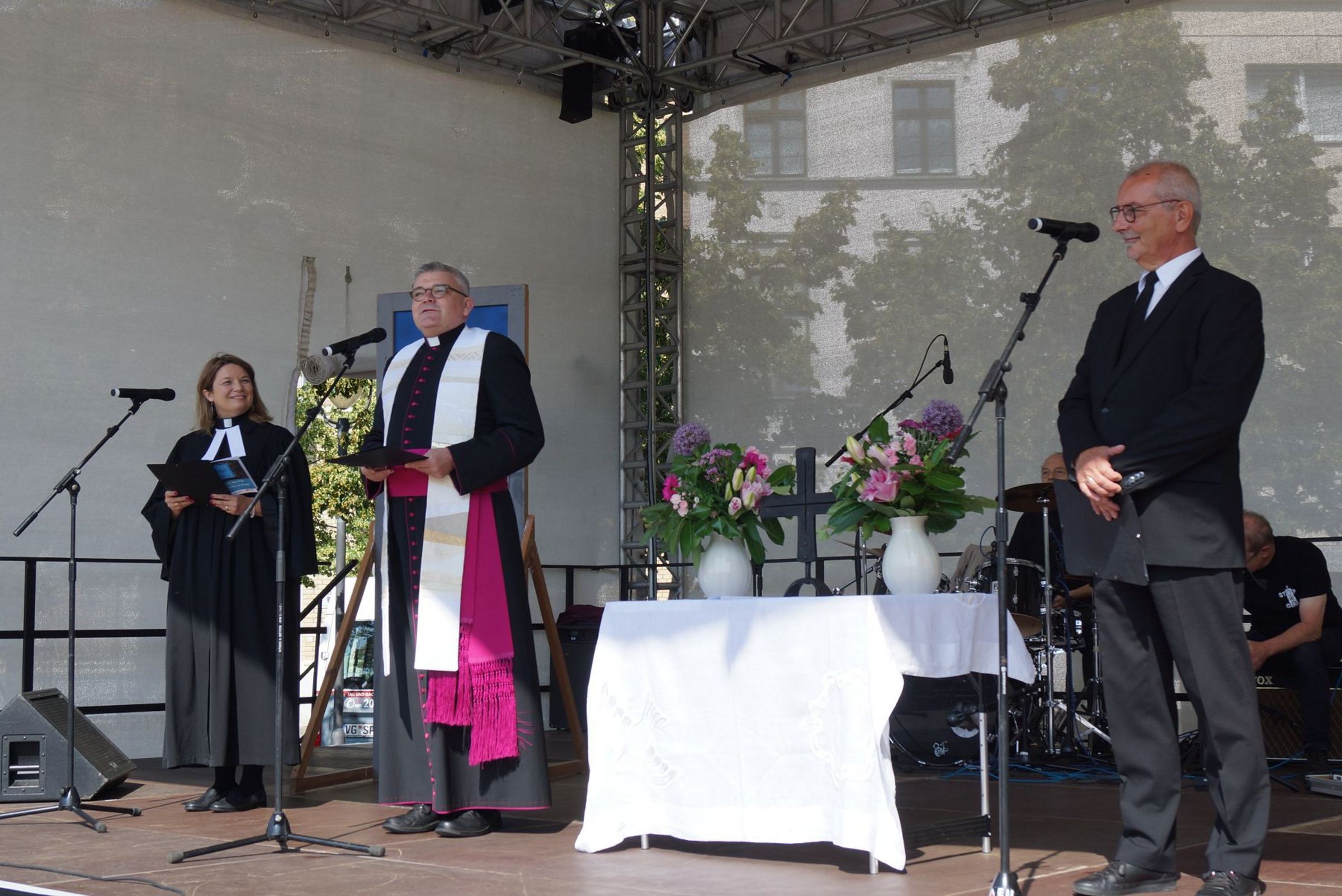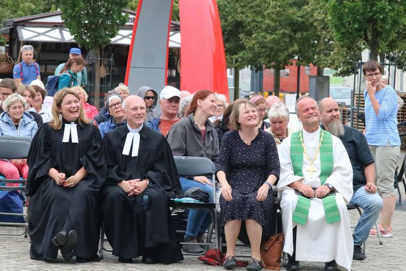 Tobias Sarx, Propst im Pommerschen Evangelischen Kirchenkreis, schloss sich der guten Bilanz an: „Hier in Pasewalk so zahlreiche Menschen aus vielen Regionen zu erleben, ins Gespräch zu kommen und zu spüren, wie uns der Glaube verbindet, das hat mich an diesem Kirchentag begeistert.“ Bischof Tilman Jeremias betonte mit Blick auf den Charakter des ÖKT als deutsch-polnisches Fest und auf die europäische Metropolregion Stettin die zentrale Lage des pommerschen Kirchenkreises und des Austragungsorts: Pasewalk befinde sich nicht am Rand, sondern liege mitten im Zentrum Europas, so der Bischof.