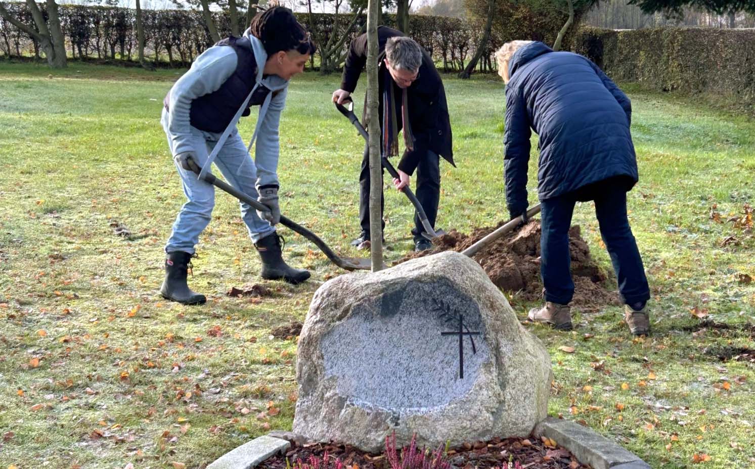 In der zurückliegenden Woche wurde die neue Bestattungsstätte mit einem Baum bepflanzt. „Die Platane hat die Kommune gespendet. Sie gibt der Anlage ein stimmiges und angemessenes Erscheinungsbild“, freut sich Marita Raben. Gemeinsam mit Küsterin Christiane Balzer und Pastor Christhart Wehring griff die Bürgermeisterin von Weitenhagen, der westlichsten Gemeinde des Amts Franzburg-Richtenberg, zu der Behrenwalde gehört, zum Spaten, um die Platane einzupflanzen. Damit ist die Gestaltung der Steingrabanlage abgeschlossen und ab sofort für Urnenbestattungen mit Namensnennung am Grabmal freigegeben. Gepflegt wird die Anlage von der Kommune, sodass Hinterbliebene sich darum nicht kümmern müssen. „Die Beisetzung erfolgt in unserer dörflichen Umgebung. Die in unmittelbarer Nähe befindliche Kapelle steht für die Trauerfeier zur Verfügung“, informiert Marita Raben. „Die Kosten für die Grabstelle mit Namensplatte belaufen sich auf 1.038,18 Euro, die Laufzeit eines Urnengrabs beträgt 20 Jahre.“