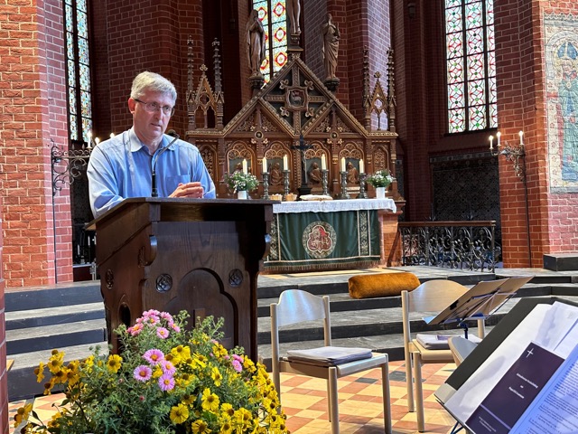 In seiner Predigt zuvor hatte Propst Sauermann seine Mitchristen und seine Kirche dazu aufgerufen, dem „Ruf nach Christus im persönlichen Leben, im Leben der Gemeinden und der Kirche einen gebührenden Platz einzuräumen“. Denn, so der Theologe, die Distanz so vieler Menschen zur Kirche habe mit ihrer nicht mehr wahrgenommenen Glaubwürdigkeit zu tun. Zugleich könne der Ruf nach Christus diese Distanz auch von der anderen Seite her überwinden.