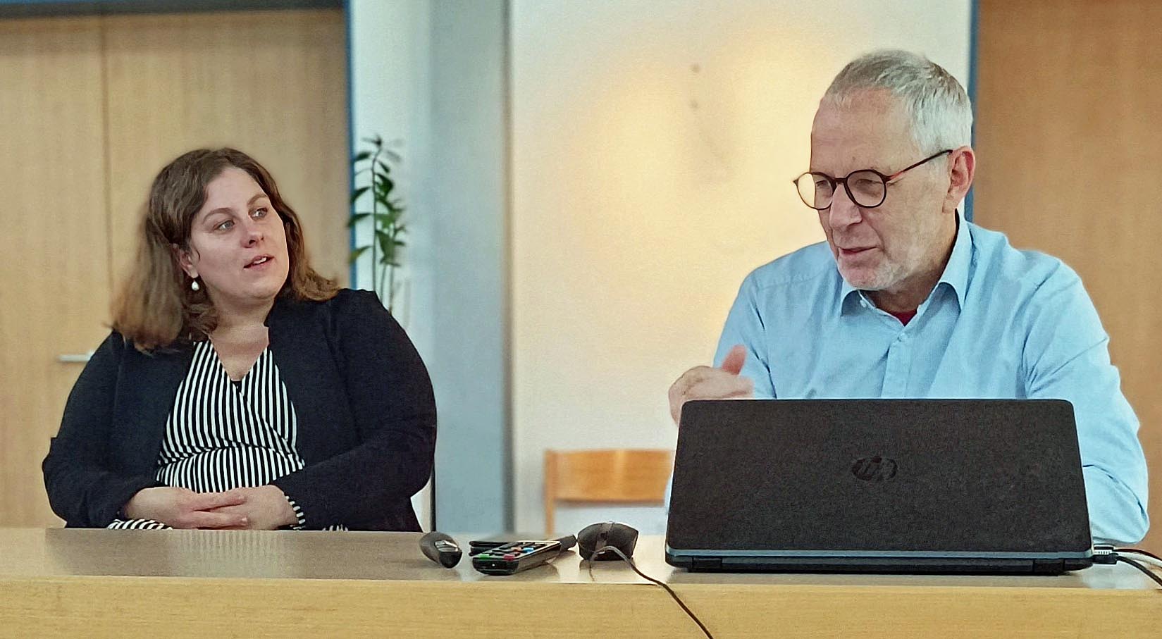 Münster und Wien waren weitere Studienorte, doch dann kam Corona. „Es hat mich wieder in den sicheren Hafen nach Greifswald geführt“. Dort legte Doreen Habermann ihr theologisches Examen ab. Und ohne, dass sie es zukunftsgewiss plante, war sie bereits mehrmals im Barther Bibelzentrum zu Gast. Ihr Professor Dr. Roland Rosenstock gestaltete nämlich die Multimediaausstellung zu den Zehn Geboten im Obergeschoss des Bibelzentrums. Doreen Habermann war dabei, hielt dazu ein Referat während ihres Studiums. Auch ihr Mann Max hat bereits Barth-Erfahrung. Da er eine innige Beziehung zur plattdeutschen Sprache hat, gehörte er schon zu der Arbeitsgruppe, die den Erlebnisbereich Plattdeutsch im Barther Bibelzentrum entwickelte. In den Hörstationen des Bibelzentrums kann man Max Habermann auch akustisch erleben. Er spricht Auszüge aus der Barther plattdeutschen Bibel.