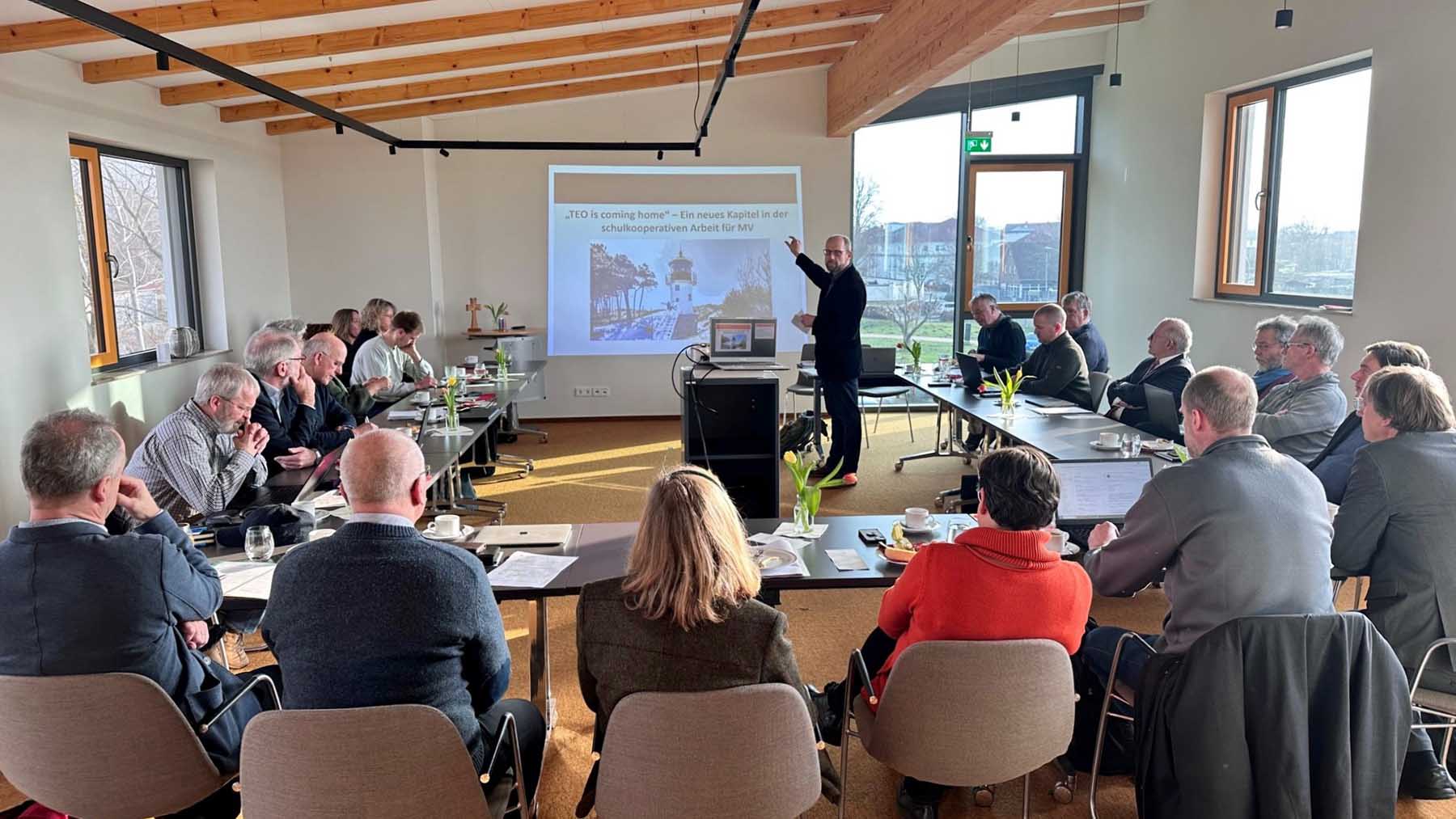 Passend dazu stellte Dr. Gerhard Altenburg, der das Zentrum Kirchlicher Dienste im Kirchenkreis Mecklenburg leitet, auf der Beratung den Konzeptzentwurf einer Arbeitsgruppe der Koordinierungskommission des Sprengels vor, mit dem zunächst für drei Jahre das bekannte schulkooperative Projekt „Tage Ethischer Orientierung – TEO“ in Mecklenburg-Vorpommern fortgeführt werden könnte. Für die Überlegungen gab es viel Zustimmung. Im Februar wollen beide Kirchenkreisräte dazu beschließen.