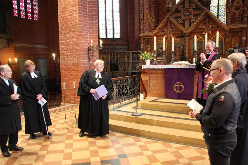 Zuvor war die 44-jährige in der St. Georgenkirche Parchim vom Bischof im Sprengel Mecklenburg und Pommern der Nordkirche, Tilman Jeremias, in ihr leitendes Amt im Evangelisch-Lutherischen Kirchenkreis Mecklenburg eingeführt worden. Unter den zahlreichen Gästen des festlichen Gottesdienstes mit viel Musik waren u.a. VertreterInnen des Pommerschen Evangelischen Kirchenkreises, des Landkreises Ludwigslust-Parchim, der Stadt Parchim und weiteren gesellschaftlichen Bereichen.