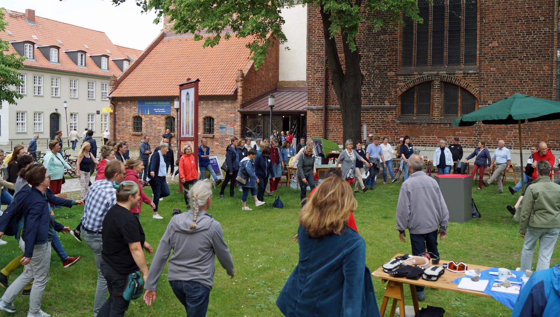 „Ich freue mich sehr, dass ihr aus den Weiten des pommerschen Landes hierhergekommen seid“, sagte Propst Gerd Panknin zur Eröffnung des Gesundheitstages auf der Domwiese. „Bunt und vielfältig sind die Angebote dieses Tages. Es geht um Herz, Leib und Seele“, hatte der Propst in der Einladung an alle Mitarbeitenden im Kirchenkreis formuliert. Die Bibel bringe das, was uns gut tue, auf den Punkt, indem sie sage, dass es gut tut, demütig zu sein. „Demut meint, besonnen, wachsam und aufmerksam zu leben. Genau das ist das Thema an diesem Tag: Achtsam leben. Aufmerksam werden auf das, was uns Gesundheit nimmt oder uns gar krank macht und entdecken, was uns gut tut in unserer Ernährung oder wie die richtige Haltung am Arbeitsplatz aussieht.“ Herzlich dankte der Propst allen, die den Tag vorbereiteten, mitgestalteten und bereicherten. Zudem sprach er der Domgemeinde seinen Dank für die Gastfreundschaft aus.