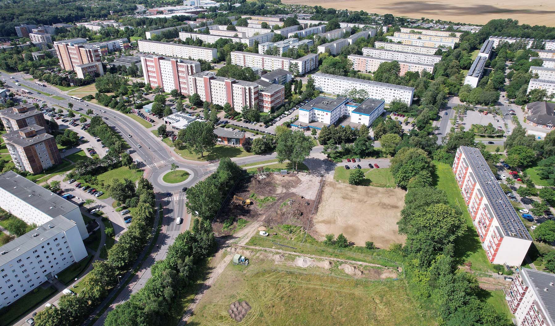 Die Bauarbeiten der regionalen Firmen gehen schneller voran als ursprünglich erwartet, so dass die Grundsteinlegung nicht wie zunächst geplant erst im Herbst, sondern schon am kommenden Wochenende erfolgen kann. Die Bodenplatte für das neue Gemeinde- und Bürgerzentrum an der Hans-Fallada-Straße ist nach Baustelleneinrichtung sowie Boden- und Fundamentarbeiten bereits gegossen. Daher laden die Stralsunder Kirchengemeinde St. Nikolai in Zusammenarbeit mit der Hansestadt Stralsund nun zur feierlich umrahmten Grundsteinlegung ein.