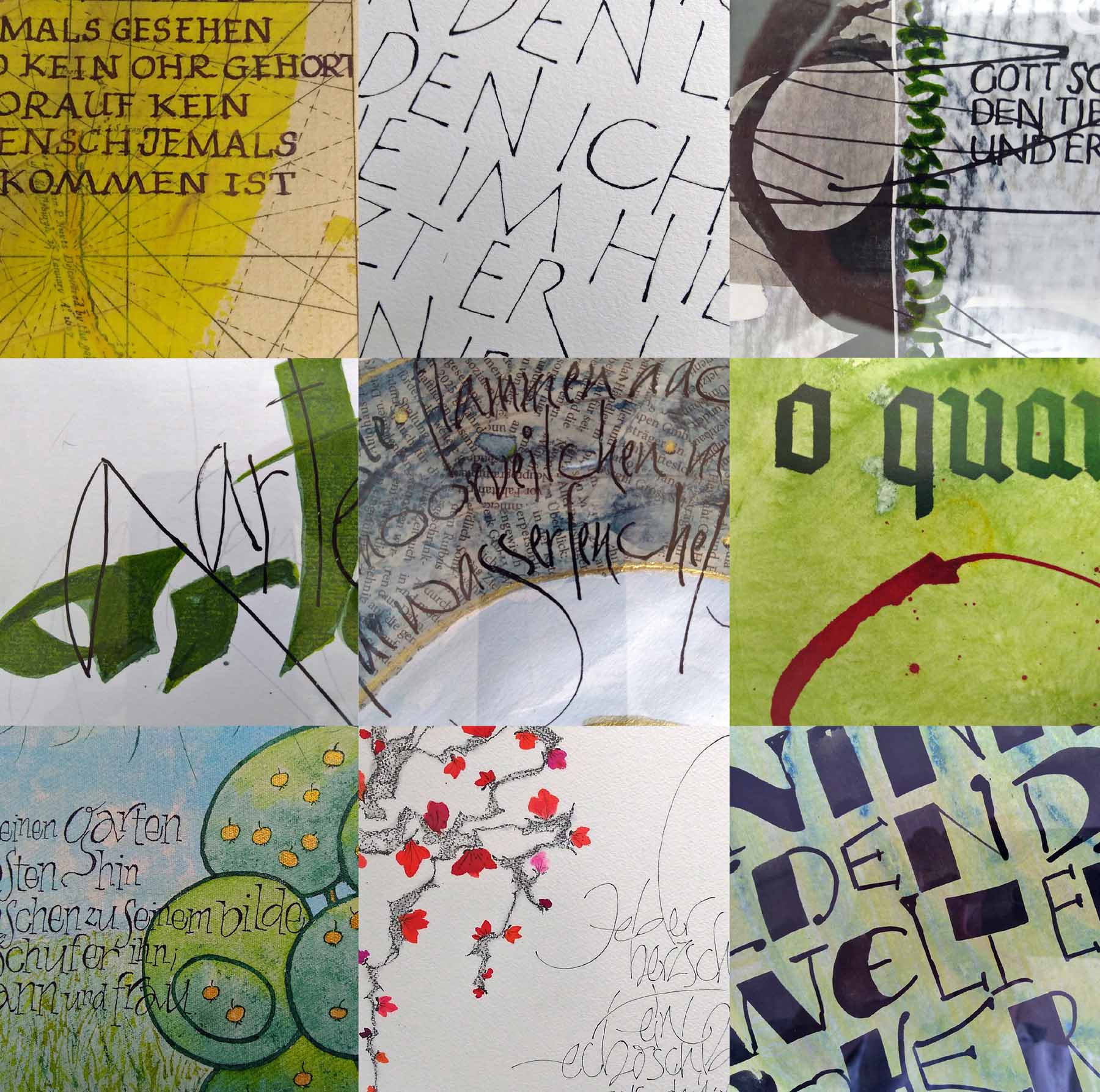 Die Collage zur Ausstellung „Garten Eden“ zeigt die Vielseitigkeit der entstandenen Arbeiten.