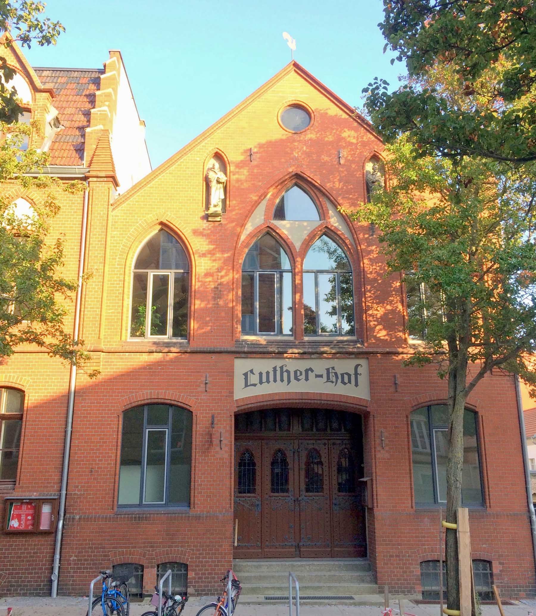 Der Lutherhof im Herzen der Hansestadt wird vor allem für kirchenmusikalische Zwecke genutzt und ist zudem für die ESG von Bedeutung, deren Büro- und Gruppenräume sich im Erdgeschoss befinden und die den Kleinen Saal als Andachts- und Vortragsraum nutzt. Es ist aber auch möglich, den Lutherhof für Veranstaltungen vom Pommerschen Evangelischen Kirchenkreis zu mieten, beispielsweise für Konzerte, Seminare, Familienfeiern, Tagungen oder Firmenfeste. Der Lutherhof bietet als Veranstaltungsräume den Großen Saal mit rund 130 Quadratmetern sowie den Kleinen Saal auf der Empore mit rund 56 Quadratmetern. Zur Verfügung stehen zudem die Küche mit Spüle, Industriegeschirrspüler, Zweiplattenherd, Kaffeemaschine, Wasserkocher sowie ein Kaffee- und Tafelservice mit Besteck für rund 200 Personen und einfache Gläser. Der große Saal kostet 300 Euro pro Tag beziehungsweise pro Veranstaltung, der kleine Saal 120 Euro. Optional sind die Nutzung der Küche, zuzüglich 24 Euro, und die Nutzung des Beamers, zuzüglich 12 Euro. Die Tische und Stühle können in verschiedenen Varianten für Seminare, Tagungen oder Bankette aufgestellt werden. Die Einnahmen aus der Vermietung des Lutherhofs werden in erster Linie zur Deckung der Betriebskosten verwendet.